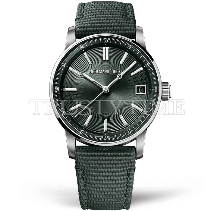 Часы Audemars Piguet из коллекции Code 11.59. Классические мужские часы Audemars Piguet Code 11.59 41mm 15210ST.OO.A056KB.01 премиального качества (Артикул магазина: AP-1177) оснащены надежным автоматическим механизмом с автоподзаводом (работает от амплитуды движения руки) калибра AP4302, в котором реализованы следующие функции: часовая, минутная и секундная стрелки, а так же дата. Круглый корпус часов стального цвета, имеющий размер 41 мм и высоту 10.7 мм превосходно дополнит образ и украсит запястье своего обладателя. Для изготовления часов Audemars Piguet Code 11.59 41mm 15210ST.OO.A056KB.01 предлагаемых в нашем интернет-магазине, применяются нержавеющая сталь 316L высокого качества (Швейцарский стандарт), а так же сапфировое стекло высокой прочности, благодаря чему обеспечивается максимальная защита от сколов и механических повреждений. Отличительной чертой данной модели является зеленый циферблат, часовые индексы которого обеспечивают часовые метки. Завершает образ нейлоновый ремешок зеленого цвета с фирменной классической застежкой Audemars Piguet. Водонепроницаемость данной модели составляет 30М (WR30) – допускается минимальное воздействие с водой.