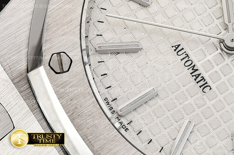 Часы Audemars Piguet из коллекции Royal Oak. Классические мужские часы Audemars Piguet Royal Oak 39mm 15300ST.OO.1220ST.01 премиального качества (Артикул магазина: AP-0665) оснащены надежным автоматическим механизмом с автоподзаводом (работает от амплитуды движения руки) калибра AP3120, в котором реализованы следующие функции: часовая, минутная и секундная стрелки, а так же дата. Восьмиугольный корпус часов стального цвета, имеющий размер 39 мм и высоту 11 мм превосходно дополнит образ и украсит запястье своего обладателя. Для изготовления часов Audemars Piguet Royal Oak 39mm 15300ST.OO.1220ST.01 предлагаемых в нашем интернет-магазине, применяются нержавеющая сталь 316F высокого качества (Швейцарский стандарт), а так же сапфировое стекло высокой прочности, благодаря чему обеспечивается максимальная защита от сколов и механических повреждений. Отличительной чертой данной модели является серебристый циферблат, часовые индексы которого обеспечивают часовые метки. Завершает образ браслет из нержавеющей стали стального цвета с фирменной раскладывающейся застежкой Audemars Piguet. Водонепроницаемость данной модели составляет 30М (WR30) – допускается минимальное воздействие с водой.