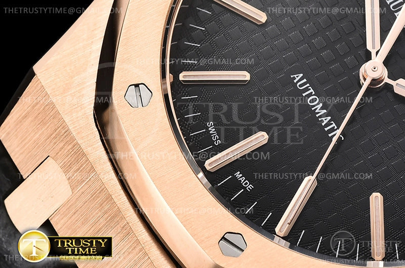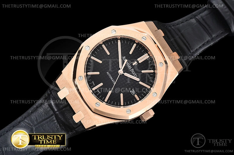 Часы Audemars Piguet из коллекции Royal Oak. Классические мужские часы Audemars Piguet Royal Oak Automatic II 15400OR.OO.D002CR.01 премиального качества (Артикул магазина: AP-0687) оснащены надежным автоматическим механизмом с автоподзаводом (работает от амплитуды движения руки) калибра AP3120, в котором реализованы следующие функции: часовая, минутная и секундная стрелки, а так же дата. Восьмиугольный корпус часов розового цвета, имеющий размер 41 мм и высоту 10.7 мм превосходно дополнит образ и украсит запястье своего обладателя. Для изготовления часов Audemars Piguet Royal Oak Automatic II 15400OR.OO.D002CR.01 предлагаемых в нашем интернет-магазине, применяются нержавеющая сталь 316F высокого качества (Швейцарский стандарт), а так же сапфировое стекло высокой прочности, благодаря чему обеспечивается максимальная защита от сколов и механических повреждений. Отличительной чертой данной модели является черный циферблат, часовые индексы которого обеспечивают часовые метки. Завершает образ кожаный ремешок черного цвета с фирменной раскладывающейся застежкой Audemars Piguet. Водонепроницаемость данной модели составляет 30М (WR30) – допускается минимальное воздействие с водой.