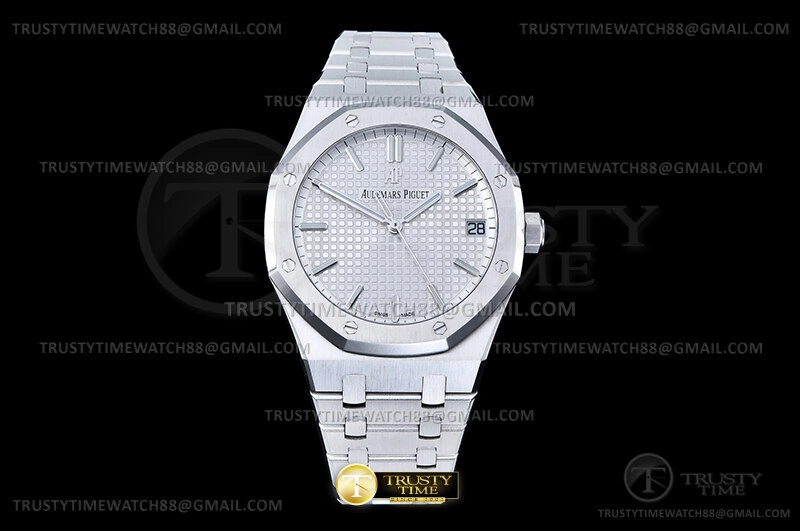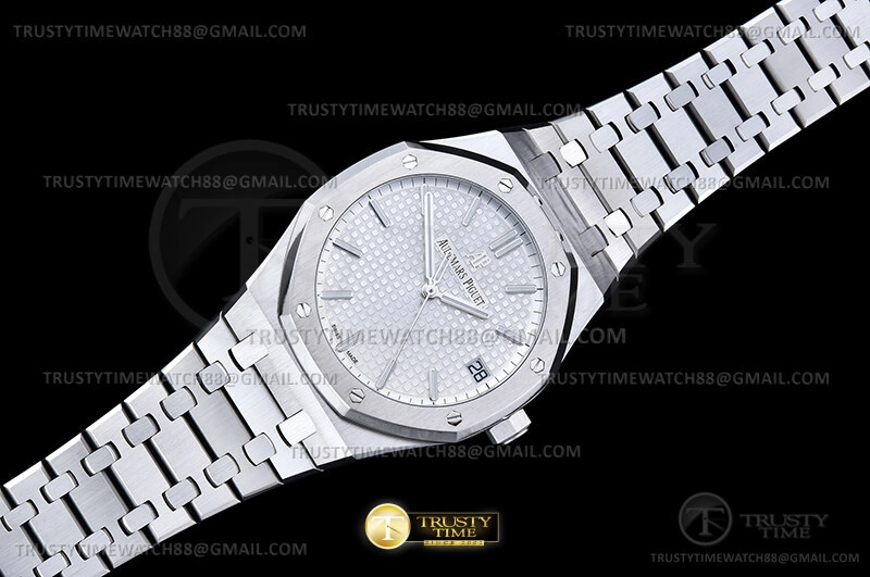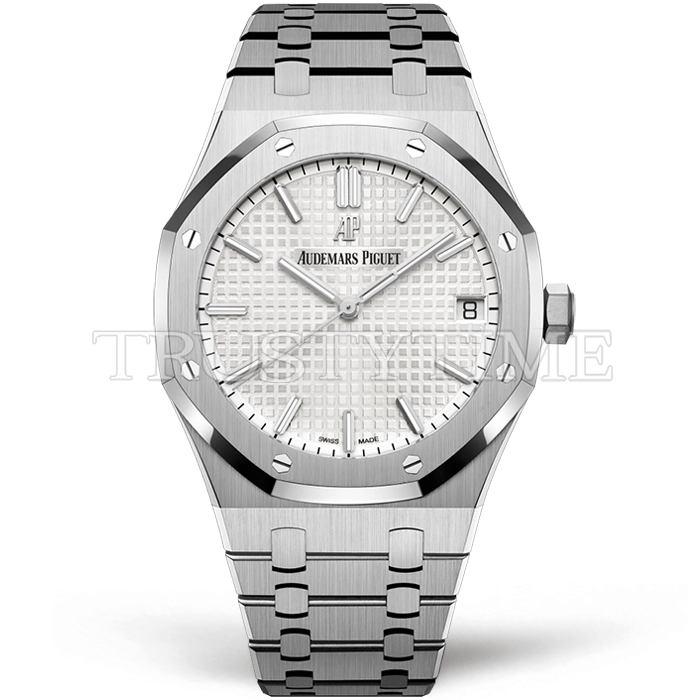Часы Audemars Piguet из коллекции Royal Oak. Классические мужские часы Audemars Piguet Royal Oak Selfwinding 15500ST.OO.1220ST.04 премиального качества (Артикул магазина: AP-0656) оснащены надежным автоматическим механизмом с автоподзаводом (работает от амплитуды движения руки) калибра AP4302, в котором реализованы следующие функции: часовая, минутная и секундная стрелки, а так же дата. Восьмиугольный корпус часов стального цвета, имеющий размер 41 мм и высоту 11 мм превосходно дополнит образ и украсит запястье своего обладателя. Для изготовления часов Audemars Piguet Royal Oak Selfwinding 15500ST.OO.1220ST.04 предлагаемых в нашем интернет-магазине, применяются нержавеющая сталь 316F высокого качества (Швейцарский стандарт), а так же сапфировое стекло высокой прочности, благодаря чему обеспечивается максимальная защита от сколов и механических повреждений. Отличительной чертой данной модели является серебристый циферблат, часовые индексы которого обеспечивают часовые метки. Завершает образ браслет из нержавеющей стали стального цвета с фирменной раскладывающейся застежкой Audemars Piguet. Водонепроницаемость данной модели составляет 30М (WR30) – допускается минимальное воздействие с водой.