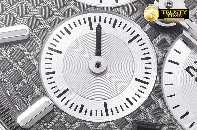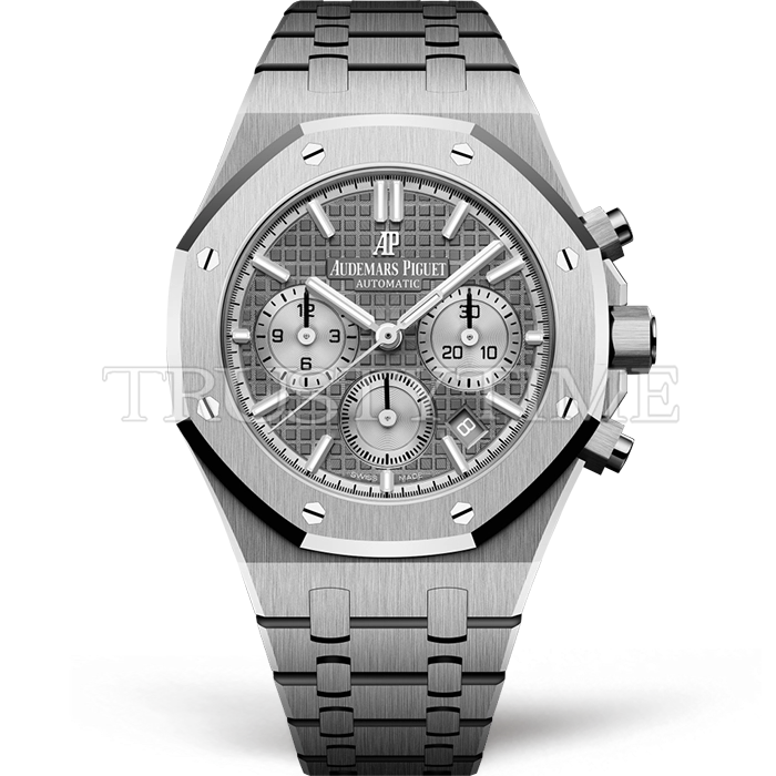 Часы Audemars Piguet из коллекции Royal Oak Chronograph. Спортивные мужские часы Audemars Piguet Royal Oak Selfwinding Chronograph 26315ST.OO.1256ST.02 премиального качества (Артикул магазина: AP-0959) оснащены надежным автоматическим механизмом с автоподзаводом (работает от амплитуды движения руки) калибра AP2385, в котором реализованы следующие функции: часовая, минутная и секундная стрелки, а так же хронограф, дата. Восьмиугольный корпус часов стального цвета, имеющий размер 41 мм и высоту 15 мм превосходно дополнит образ и украсит запястье своего обладателя. Для изготовления часов Audemars Piguet Royal Oak Selfwinding Chronograph 26315ST.OO.1256ST.02 предлагаемых в нашем интернет-магазине, применяются нержавеющая сталь 316F высокого качества (Швейцарский стандарт), а так же сапфировое стекло высокой прочности, благодаря чему обеспечивается максимальная защита от сколов и механических повреждений. Отличительной чертой данной модели является серый циферблат, часовые индексы которого обеспечивают часовые метки. Завершает образ браслет из нержавеющей стали стального цвета с фирменной раскладывающейся застежкой Audemars Piguet. Водонепроницаемость данной модели составляет 30М (WR30) – допускается минимальное воздействие с водой.