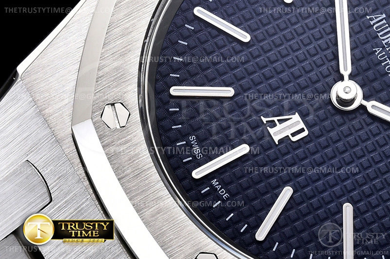 Часы Audemars Piguet из коллекции Royal Oak Jumbo. Классические мужские часы Audemars Piguet Royal Oak Jumbo Extra-thin 15202ST.OO.1240ST.01 премиального качества (Артикул магазина: AP-0972) оснащены надежным автоматическим механизмом с автоподзаводом (работает от амплитуды движения руки) калибра AP2121, в котором реализованы следующие функции: часова и минутка стрелки, а так же дата. Восьмиугольный корпус часов стального цвета, имеющий размер 39 мм и высоту 8.7 мм превосходно дополнит образ и украсит запястье своего обладателя. Для изготовления часов Audemars Piguet Royal Oak Jumbo Extra-thin 15202ST.OO.1240ST.01 предлагаемых в нашем интернет-магазине, применяются нержавеющая сталь 316F высокого качества (Швейцарский стандарт), а так же сапфировое стекло высокой прочности, благодаря чему обеспечивается максимальная защита от сколов и механических повреждений. Отличительной чертой данной модели является синий циферблат, часовые индексы которого обеспечивают часовые метки. Завершает образ браслет из нержавеющей стали стального цвета с фирменной раскладывающейся застежкой Audemars Piguet. Водонепроницаемость данной модели составляет 30М (WR30) – допускается минимальное воздействие с водой.