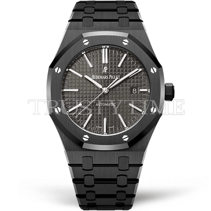 Часы Audemars Piguet из коллекции Royal Oak. Классические мужские часы Audemars Piguet Royal Oak Black Venom Custom 15400 премиального качества (Артикул магазина: AP-0980) оснащены надежным автоматическим механизмом с автоподзаводом (работает от амплитуды движения руки) калибра AP3120, в котором реализованы следующие функции: часовая, минутная и секундная стрелки, а так же дата. Восьмиугольный корпус часов черного цвета, имеющий размер 41 мм и высоту 10 мм превосходно дополнит образ и украсит запястье своего обладателя. Для изготовления часов Audemars Piguet Royal Oak Black Venom Custom 15400 предлагаемых в нашем интернет-магазине, применяются нержавеющая сталь 316F высокого качества (Швейцарский стандарт), а так же сапфировое стекло высокой прочности, благодаря чему обеспечивается максимальная защита от сколов и механических повреждений. Отличительной чертой данной модели является серый циферблат, часовые индексы которого обеспечивают часовые метки. Завершает образ браслет из нержавеющей стали черного цвета с фирменной раскладывающейся застежкой Audemars Piguet. Водонепроницаемость данной модели составляет 30М (WR30) – допускается минимальное воздействие с водой.