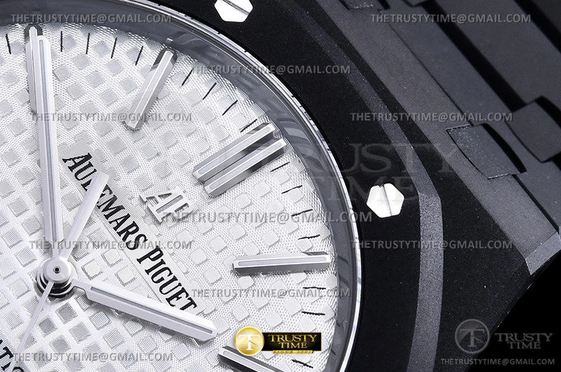 Часы Audemars Piguet из коллекции Royal Oak. Классические мужские часы Audemars Piguet Royal Oak Black Venom Custom 15400 премиального качества (Артикул магазина: AP-0981) оснащены надежным автоматическим механизмом с автоподзаводом (работает от амплитуды движения руки) калибра AP3120, в котором реализованы следующие функции: часовая, минутная и секундная стрелки, а так же дата. Восьмиугольный корпус часов черного цвета, имеющий размер 41 мм и высоту 10 мм превосходно дополнит образ и украсит запястье своего обладателя. Для изготовления часов Audemars Piguet Royal Oak Black Venom Custom 15400 предлагаемых в нашем интернет-магазине, применяются нержавеющая сталь 316F высокого качества (Швейцарский стандарт), а так же сапфировое стекло высокой прочности, благодаря чему обеспечивается максимальная защита от сколов и механических повреждений. Отличительной чертой данной модели является белый циферблат, часовые индексы которого обеспечивают часовые метки. Завершает образ браслет из нержавеющей стали черного цвета с фирменной раскладывающейся застежкой Audemars Piguet. Водонепроницаемость данной модели составляет 30М (WR30) – допускается минимальное воздействие с водой.