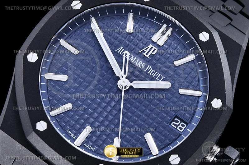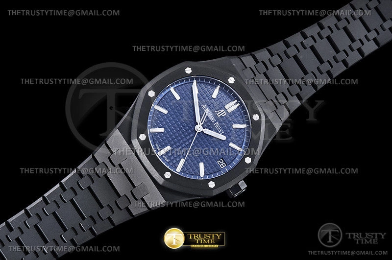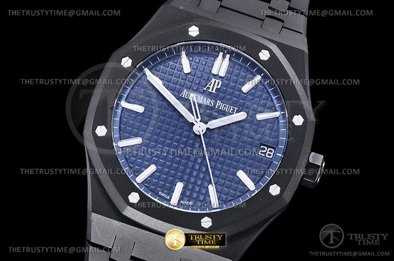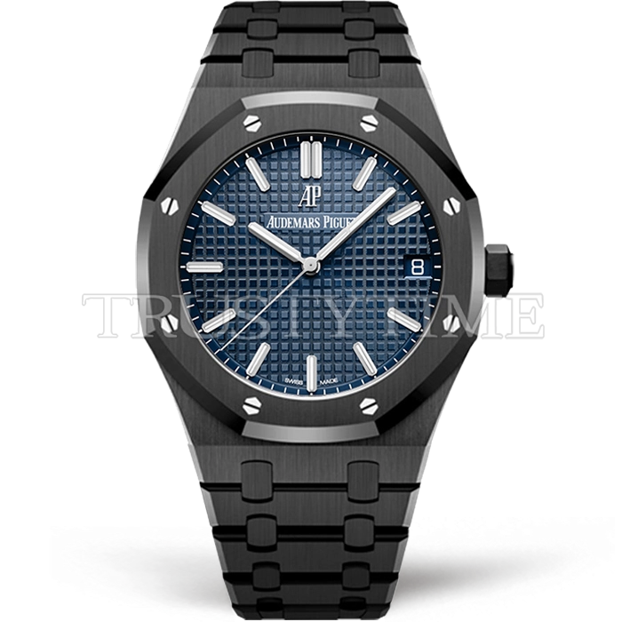 Часы Audemars Piguet из коллекции Royal Oak. Классические мужские часы Audemars Piguet Royal Oak Black Venom Custom 15500 премиального качества (Артикул магазина: AP-0988) оснащены надежным автоматическим механизмом с автоподзаводом (работает от амплитуды движения руки) калибра AP4302, в котором реализованы следующие функции: часовая, минутная и секундная стрелки, а так же дата. Восьмиугольный корпус часов черного цвета, имеющий размер 41 мм и высоту 11 мм превосходно дополнит образ и украсит запястье своего обладателя. Для изготовления часов Audemars Piguet Royal Oak Black Venom Custom 15500 предлагаемых в нашем интернет-магазине, применяются нержавеющая сталь 316F высокого качества (Швейцарский стандарт), а так же сапфировое стекло высокой прочности, благодаря чему обеспечивается максимальная защита от сколов и механических повреждений. Отличительной чертой данной модели является синий циферблат, часовые индексы которого обеспечивают часовые метки. Завершает образ браслет из нержавеющей стали черного цвета с фирменной раскладывающейся застежкой Audemars Piguet. Водонепроницаемость данной модели составляет 30М (WR30) – допускается минимальное воздействие с водой.