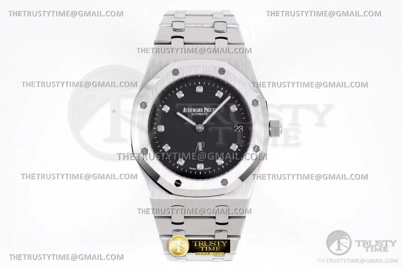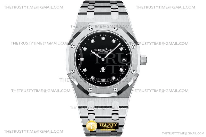 Часы Audemars Piguet из коллекции Royal Oak. Классические мужские часы Audemars Piguet Royal Oak 39mm Japan Boutique Editions 15206PT.OO.1240PT.01 премиального качества (Артикул магазина: AP-1024) оснащены надежным автоматическим механизмом с автоподзаводом (работает от амплитуды движения руки) калибра AP3120, в котором реализованы следующие функции: часова и минутка стрелки, а так же дата. Восьмиугольный корпус часов стального цвета, имеющий размер 39 мм и высоту 11 мм превосходно дополнит образ и украсит запястье своего обладателя. Для изготовления часов Audemars Piguet Royal Oak 39mm Japan Boutique Editions 15206PT.OO.1240PT.01 предлагаемых в нашем интернет-магазине, применяются нержавеющая сталь 316F высокого качества (Швейцарский стандарт), а так же сапфировое стекло высокой прочности, благодаря чему обеспечивается максимальная защита от сколов и механических повреждений. Отличительной чертой данной модели является черный циферблат, часовые индексы которого обеспечивают камни. Завершает образ браслет из нержавеющей стали стального цвета с фирменной раскладывающейся застежкой Audemars Piguet. Водонепроницаемость данной модели составляет 30М (WR30) – допускается минимальное воздействие с водой.
