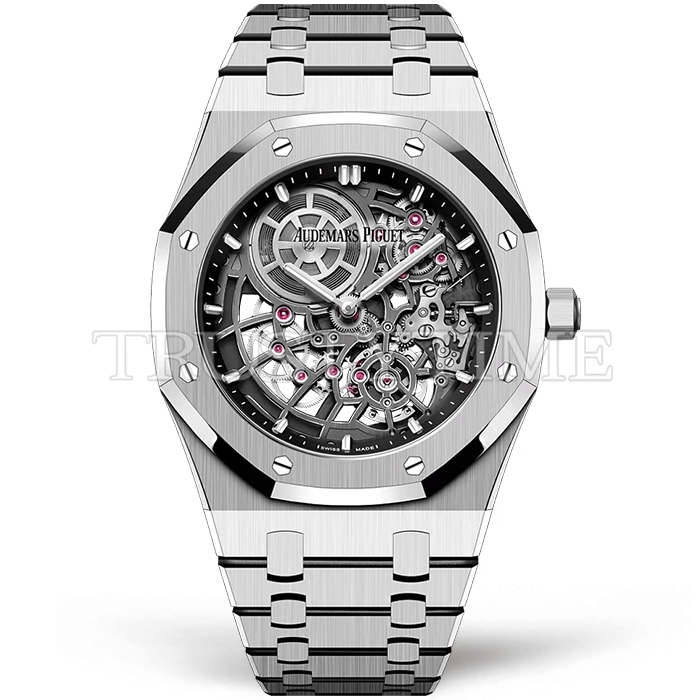 Часы Audemars Piguet из коллекции Royal Oak Jumbo. Классические мужские часы Audemars Piguet Royal Oak Jumbo Extra-Thin Openworked 16204BC.OO.1240BC.01 премиального качества (Артикул магазина: AP-1223) оснащены надежным автоматическим механизмом с автоподзаводом (работает от амплитуды движения руки) калибра AP7121, в котором реализованы следующие функции: часова и минутка стрелки, а так же максимально простой функционал без усложнений. Восьмиугольный корпус часов стального цвета, имеющий размер 39 мм и высоту 9.7 мм превосходно дополнит образ и украсит запястье своего обладателя. Для изготовления часов Audemars Piguet Royal Oak Jumbo Extra-Thin Openworked 16204BC.OO.1240BC.01 предлагаемых в нашем интернет-магазине, применяются нержавеющая сталь 316F высокого качества (Швейцарский стандарт), а так же сапфировое стекло высокой прочности, благодаря чему обеспечивается максимальная защита от сколов и механических повреждений. Отличительной чертой данной модели является скелетонизированный циферблат, часовые индексы которого обеспечивают часовые метки. Завершает образ браслет из нержавеющей стали стального цвета с фирменной раскладывающейся застежкой Audemars Piguet. Водонепроницаемость данной модели составляет 30М (WR30) – допускается минимальное воздействие с водой.