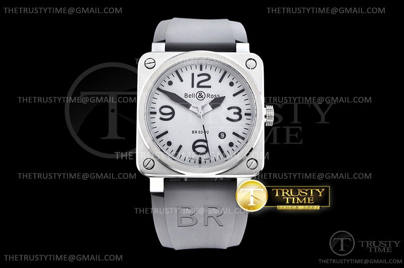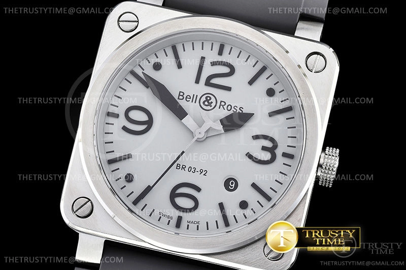 Часы Bell & Ross из коллекции BR 03-92. Классические мужские часы Bell & Ross BR 03-92 Horoblack BR0392-GBL-ST/SRB премиального качества (Артикул магазина: BR-0244) оснащены надежным автоматическим механизмом с автоподзаводом (работает от амплитуды движения руки) калибра MY9015, в котором реализованы следующие функции: часовая, минутная и секундная стрелки, а так же дата. Квадратный корпус часов стального цвета, имеющий размер 42 мм X 42 мм и высоту 11 мм превосходно дополнит образ и украсит запястье своего обладателя. Для изготовления часов Bell & Ross BR 03-92 Horoblack BR0392-GBL-ST/SRB предлагаемых в нашем интернет-магазине, применяются нержавеющая сталь 316L высокого качества (Швейцарский стандарт), а так же сапфировое стекло высокой прочности, благодаря чему обеспечивается максимальная защита от сколов и механических повреждений. Отличительной чертой данной модели является серый циферблат, часовые индексы которого обеспечивают часовые метки. Завершает образ каучуковый ремешок черного цвета с фирменной классической застежкой Bell & Ross. Водонепроницаемость данной модели составляет 30М (WR30) – допускается минимальное воздействие с водой.