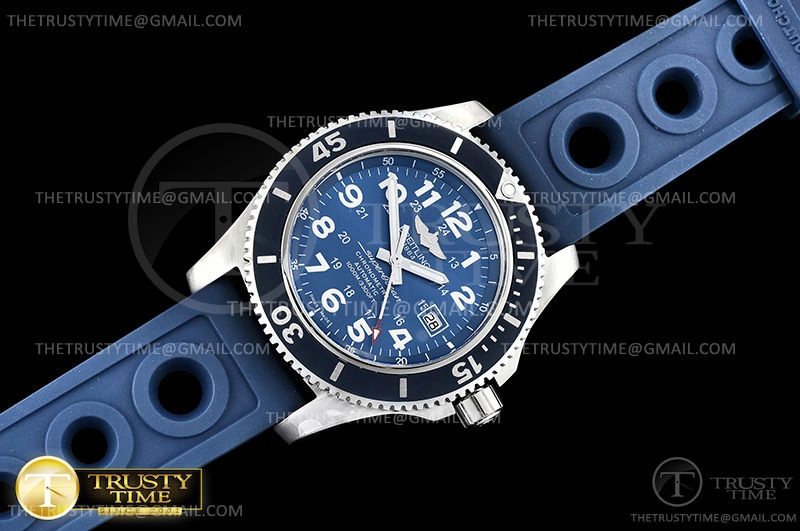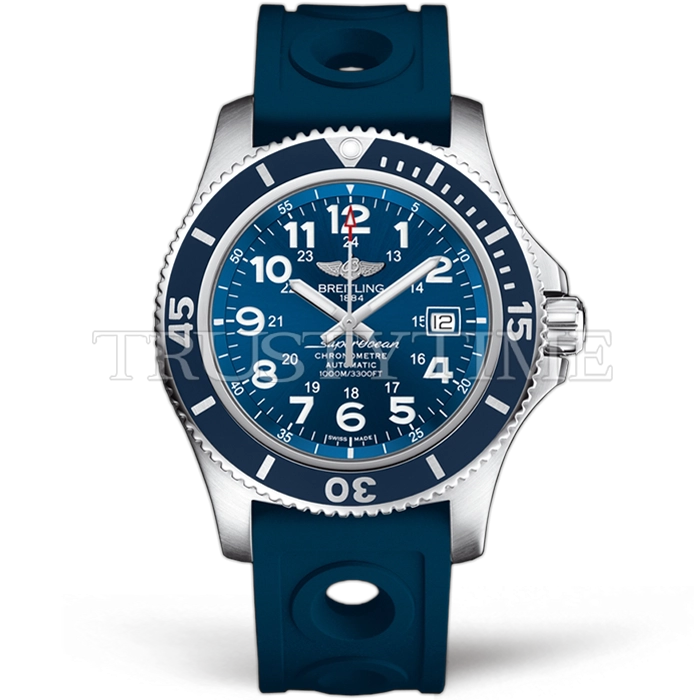 Часы Breitling из коллекции Superocean. Классические мужские часы Breitling Superocean II Gun 44 A17392D8/C910/228S/A20SS.1 премиального качества (Артикул магазина: BT-0524) оснащены надежным автоматическим механизмом с автоподзаводом (работает от амплитуды движения руки) калибра ETA2824-2, в котором реализованы следующие функции: часовая, минутная и секундная стрелки, а так же дата. Круглый корпус часов стального цвета, имеющий размер 44 мм и высоту 14.5 мм превосходно дополнит образ и украсит запястье своего обладателя. Для изготовления часов Breitling Superocean II Gun 44 A17392D8/C910/228S/A20SS.1 предлагаемых в нашем интернет-магазине, применяются нержавеющая сталь 316F высокого качества (Швейцарский стандарт), а так же сапфировое стекло высокой прочности, благодаря чему обеспечивается максимальная защита от сколов и механических повреждений. Отличительной чертой данной модели является синий циферблат, часовые индексы которого обеспечивают арабские цифры. Завершает образ каучуковый ремешок синего цвета с фирменной классической застежкой Breitling. Водонепроницаемость данной модели составляет 30М (WR30) – допускается минимальное воздействие с водой.