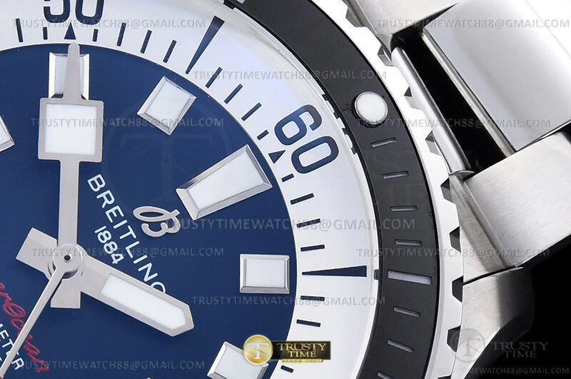 Часы Breitling из коллекции Superocean. Спортивные мужские часы Breitling Superocean Automatic 44mm A17376211C1A1 премиального качества (Артикул магазина: BT-1051) оснащены надежным автоматическим механизмом с автоподзаводом (работает от амплитуды движения руки) калибра ETA2824-2, в котором реализованы следующие функции: часовая, минутная и секундная стрелки, а так же максимально простой функционал без усложнений. Круглый корпус часов стального цвета, имеющий размер 44 мм и высоту 12.6 мм превосходно дополнит образ и украсит запястье своего обладателя. Для изготовления часов Breitling Superocean Automatic 44mm A17376211C1A1 предлагаемых в нашем интернет-магазине, применяются нержавеющая сталь 316L высокого качества (Швейцарский стандарт), а так же сапфировое стекло высокой прочности, благодаря чему обеспечивается максимальная защита от сколов и механических повреждений. Отличительной чертой данной модели является синий циферблат, часовые индексы которого обеспечивают часовые метки. Завершает образ браслет из нержавеющей стали стального цвета с фирменной раскладывающейся застежкой Breitling. Водонепроницаемость данной модели составляет 30М (WR30) – допускается минимальное воздействие с водой.