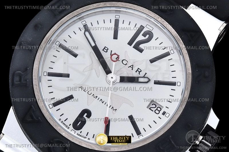 Часы Bvlgari из коллекции Aluminium. Классические мужские часы Bvlgari Aluminium Steve Aoki 103539 премиального качества (Артикул магазина: BV-0707) оснащены надежным автоматическим механизмом с автоподзаводом (работает от амплитуды движения руки) калибра ETA2892-2, в котором реализованы следующие функции: часовая, минутная и секундная стрелки, а так же дата. Круглый корпус часов стального цвета, имеющий размер 40 мм и высоту 10 мм превосходно дополнит образ и украсит запястье своего обладателя. Для изготовления часов Bvlgari Aluminium Steve Aoki 103539 предлагаемых в нашем интернет-магазине, применяются алюминий высокого качества (Швейцарский стандарт), а так же сапфировое стекло высокой прочности, благодаря чему обеспечивается максимальная защита от сколов и механических повреждений. Отличительной чертой данной модели является белый циферблат, часовые индексы которого обеспечивают часовые метки. Завершает образ каучуковый ремешок черного цвета с фирменной классической застежкой Bvlgari. Водонепроницаемость данной модели составляет 30М (WR30) – допускается минимальное воздействие с водой.