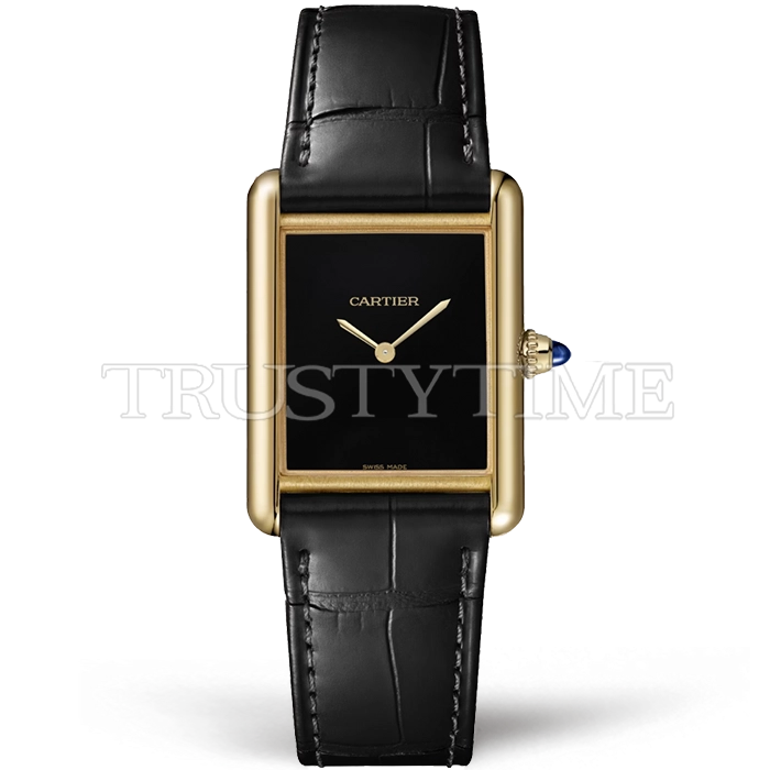 Часы Cartier из коллекции Tank Louis Watch. Классические мужские часы Cartier Tank Louis Watch WGTA0091 премиального качества (Артикул магазина: CR-0970) оснащены надежным кварцевым механизмом (работает от батареи) калибра Swiss Quartz ETA, в котором реализованы следующие функции: часова и минутка стрелки, а так же максимально простой функционал без усложнений. Прямоугольный корпус часов цветы желтой золота, имеющий размер 33.7 мм x 25.5 мм и высоту 6.7 мм превосходно дополнит образ и украсит запястье своего обладателя. Для изготовления часов Cartier Tank Louis Watch WGTA0091 предлагаемых в нашем интернет-магазине, применяются нержавеющая сталь 316L высокого качества (Швейцарский стандарт), а так же сапфировое стекло высокой прочности, благодаря чему обеспечивается максимальная защита от сколов и механических повреждений. Отличительной чертой данной модели является черный циферблат, без меток и цифр. Завершает образ кожаный ремешок черного цвета с фирменной классической застежкой Cartier. Водонепроницаемость данной модели составляет 30М (WR30) – допускается минимальное воздействие с водой.