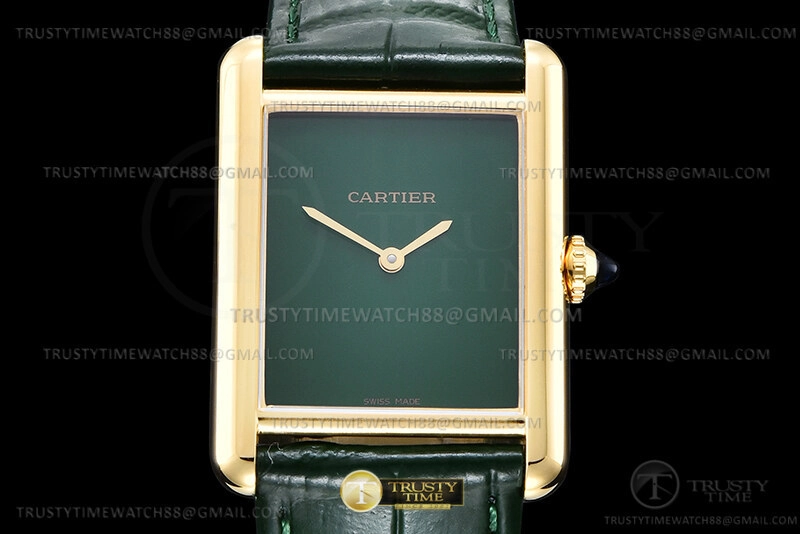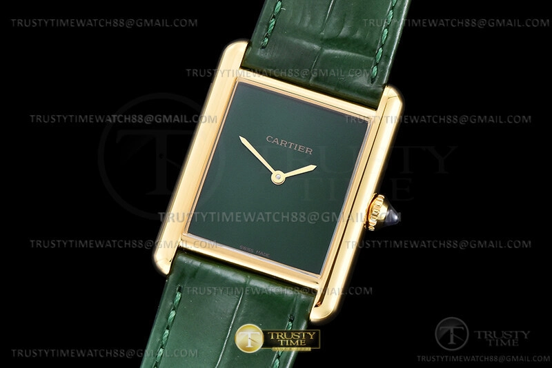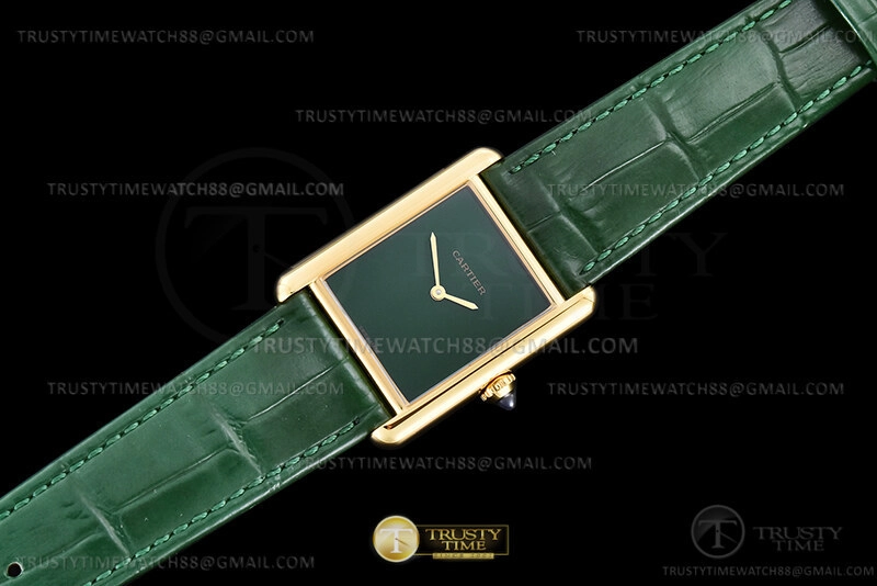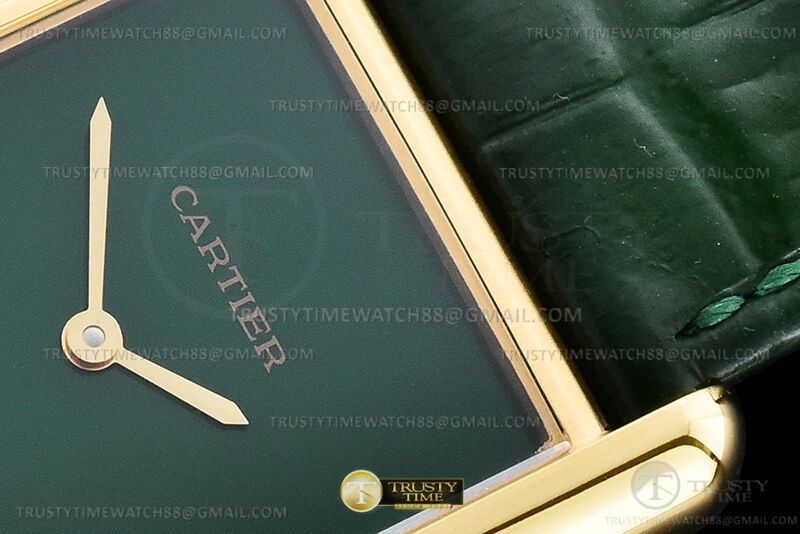 Часы Cartier из коллекции Tank Louis Watch. Классические мужские часы Cartier Tank Louis Watch WGTA0191 премиального качества (Артикул магазина: CR-0971) оснащены надежным кварцевым механизмом (работает от батареи) калибра Swiss Quartz ETA, в котором реализованы следующие функции: часова и минутка стрелки, а так же максимально простой функционал без усложнений. Прямоугольный корпус часов цветы желтой золота, имеющий размер 33.7 мм x 25.5 мм и высоту 6.7 мм превосходно дополнит образ и украсит запястье своего обладателя. Для изготовления часов Cartier Tank Louis Watch WGTA0191 предлагаемых в нашем интернет-магазине, применяются нержавеющая сталь 316L высокого качества (Швейцарский стандарт), а так же сапфировое стекло высокой прочности, благодаря чему обеспечивается максимальная защита от сколов и механических повреждений. Отличительной чертой данной модели является зеленый циферблат, без меток и цифр. Завершает образ кожаный ремешок зеленого цвета с фирменной классической застежкой Cartier. Водонепроницаемость данной модели составляет 30М (WR30) – допускается минимальное воздействие с водой.