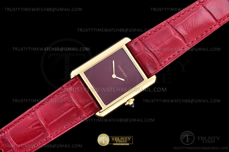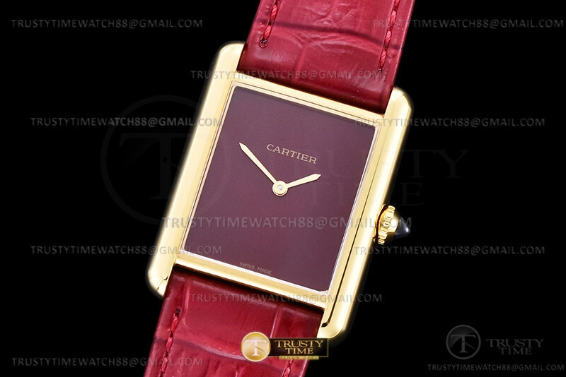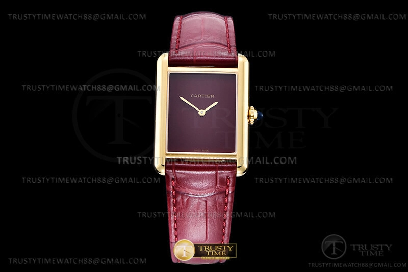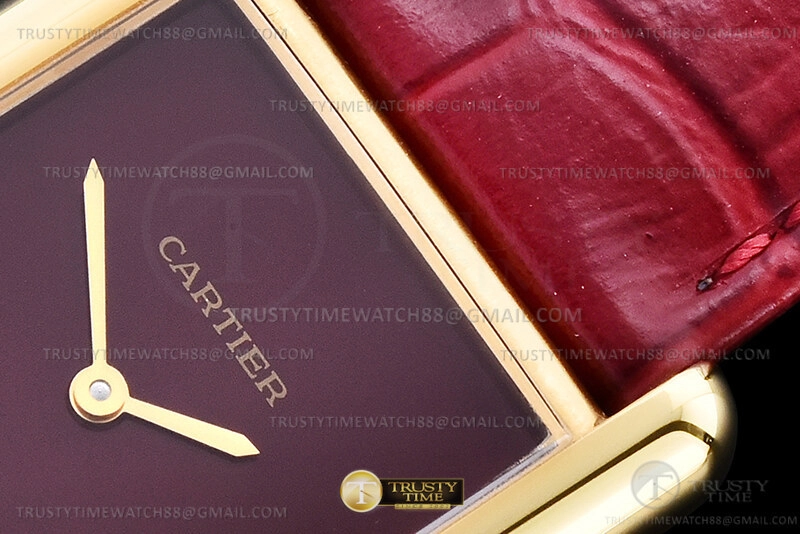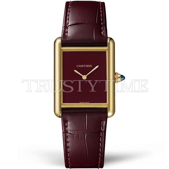 Часы Cartier из коллекции Tank Louis Watch. Классические мужские часы Cartier Tank Louis Watch WGTA0190 премиального качества (Артикул магазина: CR-0972) оснащены надежным кварцевым механизмом (работает от батареи) калибра Swiss Quartz ETA, в котором реализованы следующие функции: часова и минутка стрелки, а так же максимально простой функционал без усложнений. Прямоугольный корпус часов цветы желтой золота, имеющий размер 33.7 мм x 25.5 мм и высоту 6.7 мм превосходно дополнит образ и украсит запястье своего обладателя. Для изготовления часов Cartier Tank Louis Watch WGTA0190 предлагаемых в нашем интернет-магазине, применяются нержавеющая сталь 316L высокого качества (Швейцарский стандарт), а так же сапфировое стекло высокой прочности, благодаря чему обеспечивается максимальная защита от сколов и механических повреждений. Отличительной чертой данной модели является бордовый циферблат, без меток и цифр. Завершает образ кожаный ремешок бордового цвета с фирменной классической застежкой Cartier. Водонепроницаемость данной модели составляет 30М (WR30) – допускается минимальное воздействие с водой.