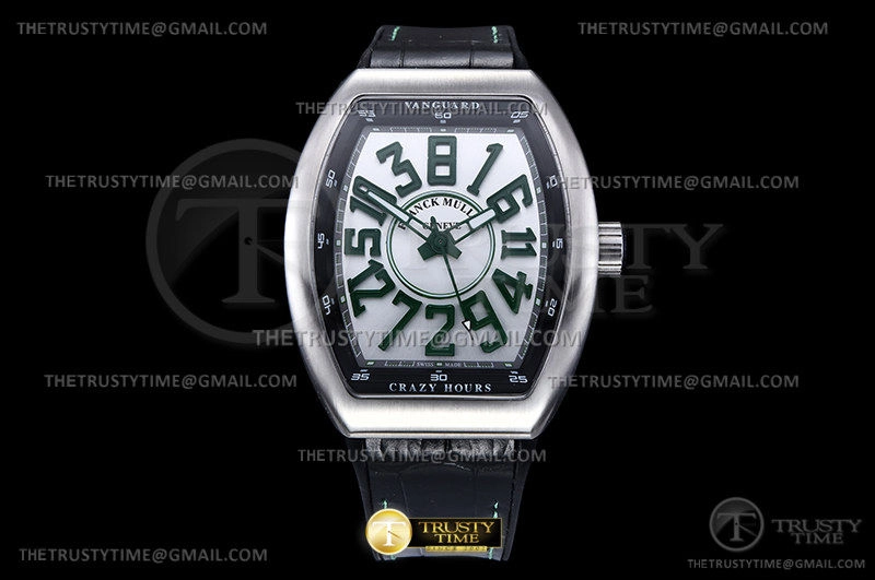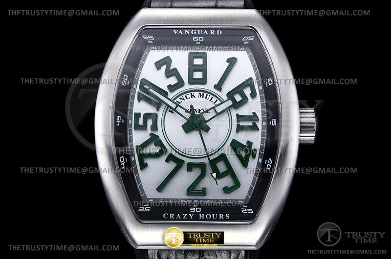 Часы Franck Muller из коллекции Vanguard. Классические мужские часы Franck Muller Vanguard V45-CH-BR-(VR) премиального качества (Артикул магазина: FM-0665) оснащены надежным автоматическим механизмом с автоподзаводом (работает от амплитуды движения руки) калибра MY9015, в котором реализованы следующие функции: часовая, минутная и секундная стрелки, а так же максимально простой функционал без усложнений. Бочкообразный корпус часов стального цвета, имеющий размер 44 мм x 54 мм и высоту 13.5 мм превосходно дополнит образ и украсит запястье своего обладателя. Для изготовления часов Franck Muller Vanguard V45-CH-BR-(VR) предлагаемых в нашем интернет-магазине, применяются нержавеющая сталь 316L высокого качества (Швейцарский стандарт), а так же сапфировое стекло высокой прочности, благодаря чему обеспечивается максимальная защита от сколов и механических повреждений. Отличительной чертой данной модели является серебристый циферблат, часовые индексы которого обеспечивают арабские цифры. Завершает образ кожаный ремешок черного цвета с фирменной раскладывающейся застежкой Franck Muller. Водонепроницаемость данной модели составляет 30М (WR30) – допускается минимальное воздействие с водой.