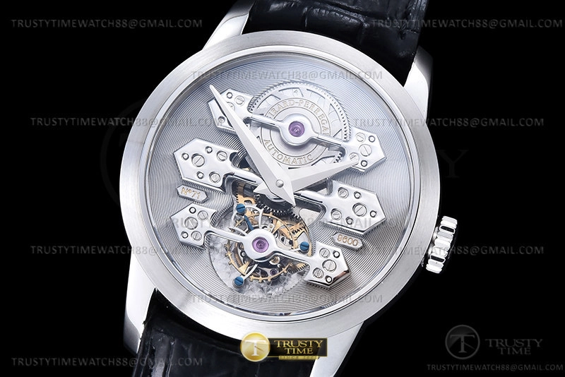 Часы Girard Perregaux из коллекции Bridges. Классические мужские часы Girard Perregaux La Esmeralda Tourbillon 99275-53-000-BA6E премиального качества (Артикул магазина: GP-0486) оснащены надежным автоматическим механизмом с ручным заводом калибра Seagull Handwind Tourbillon, в котором реализованы следующие функции: часова и минутка стрелки, а так же турбийон. Круглый корпус часов стального цвета, имеющий размер 41 мм и высоту 11.5 мм превосходно дополнит образ и украсит запястье своего обладателя. Для изготовления часов Girard Perregaux La Esmeralda Tourbillon 99275-53-000-BA6E предлагаемых в нашем интернет-магазине, применяются нержавеющая сталь 316F высокого качества (Швейцарский стандарт), а так же сапфировое стекло высокой прочности, благодаря чему обеспечивается максимальная защита от сколов и механических повреждений. Отличительной чертой данной модели является серебристый циферблат, без меток и цифр. Завершает образ кожаный ремешок черного цвета с фирменной раскладывающейся застежкой Girard Perregaux. Водонепроницаемость данной модели составляет 30М (WR30) – допускается минимальное воздействие с водой.