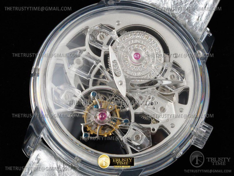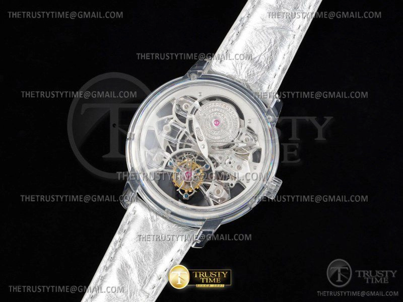 Часы Girard Perregaux из коллекции Bridges. Классические мужские часы Girard Perregaux Quasar Azure Tourbillon With Three Bridges 99295-43-001-BA6A премиального качества (Артикул магазина: GP-0484) оснащены надежным автоматическим механизмом с ручным заводом калибра Seagull Handwind Tourbillon, в котором реализованы следующие функции: часова и минутка стрелки, а так же турбийон. Круглый корпус часов прозрачного цвета, имеющий размер 46 мм и высоту 15.5 мм превосходно дополнит образ и украсит запястье своего обладателя. Для изготовления часов Girard Perregaux Quasar Azure Tourbillon With Three Bridges 99295-43-001-BA6A предлагаемых в нашем интернет-магазине, применяются композитный материал высокого качества (Швейцарский стандарт), а так же сапфировое стекло высокой прочности, благодаря чему обеспечивается максимальная защита от сколов и механических повреждений. Отличительной чертой данной модели является скелетонизированный циферблат, без меток и цифр. Завершает образ кожаный ремешок белого цвета с фирменной раскладывающейся застежкой Girard Perregaux. Водонепроницаемость данной модели составляет 30М (WR30) – допускается минимальное воздействие с водой.