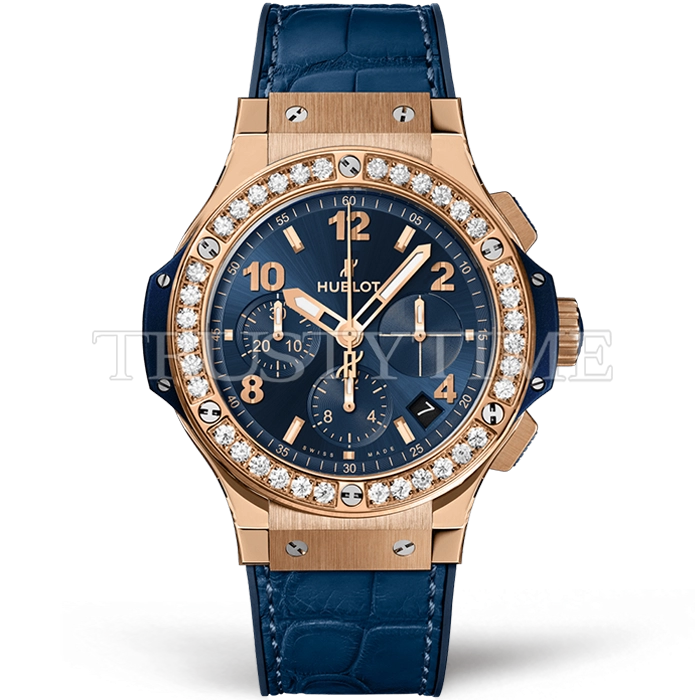 Часы Hublot из коллекции Big Bang. Спортивные мужские часы Hublot Big Bang 41 341.PX.7180.LR.1204 премиального качества (Артикул магазина: HB-0875) оснащены надежным автоматическим механизмом с автоподзаводом (работает от амплитуды движения руки) калибра HUB4100, в котором реализованы следующие функции: часовая, минутная и секундная стрелки, а так же хронограф, дата. Круглый корпус часов розового цвета, имеющий размер 41 мм и высоту 13 мм превосходно дополнит образ и украсит запястье своего обладателя. Для изготовления часов Hublot Big Bang 41 341.PX.7180.LR.1204 предлагаемых в нашем интернет-магазине, применяются нержавеющая сталь 316L высокого качества (Швейцарский стандарт), а так же сапфировое стекло высокой прочности, благодаря чему обеспечивается максимальная защита от сколов и механических повреждений. Отличительной чертой данной модели является синий циферблат, часовые индексы которого обеспечивают арабские цифры, часовые индексы которого обеспечивают часовые метки. Завершает образ кожаный ремешок синего цвета с фирменной раскладывающейся застежкой Hublot. Водонепроницаемость данной модели составляет 30М (WR30) – допускается минимальное воздействие с водой.