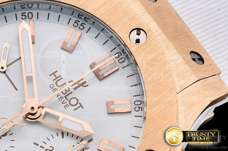 Часы Hublot из коллекции Big Bang. Спортивные мужские часы Hublot Big Bang Original Evolution White Gold 44mm 301.PE.2180.GR премиального качества (Артикул магазина: HB-0416) оснащены надежным автоматическим механизмом с автоподзаводом (работает от амплитуды движения руки) калибра Valjoux-7750, в котором реализованы следующие функции: часовая, минутная и секундная стрелки, а так же хронограф, дата. Круглый корпус часов розового цвета, имеющий размер 44 мм и высоту 15.5 мм превосходно дополнит образ и украсит запястье своего обладателя. Для изготовления часов Hublot Big Bang Original Evolution White Gold 44mm 301.PE.2180.GR предлагаемых в нашем интернет-магазине, применяются нержавеющая сталь 316L высокого качества (Швейцарский стандарт), а так же сапфировое стекло высокой прочности, благодаря чему обеспечивается максимальная защита от сколов и механических повреждений. Отличительной чертой данной модели является белый циферблат, часовые индексы которого обеспечивают часовые метки. Завершает образ каучуковый ремешок белого цвета с фирменной раскладывающейся застежкой Hublot. Водонепроницаемость данной модели составляет 30М (WR30) – допускается минимальное воздействие с водой.