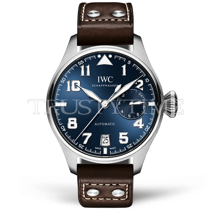 Часы IWC из коллекции Big Pilot's. Классические мужские часы IWC Pilot's Watch Edition le Petit Prince 46mm IW500908 премиального качества (Артикул магазина: IW-0818) оснащены надежным автоматическим механизмом с автоподзаводом (работает от амплитуды движения руки) калибра IWC521111, в котором реализованы следующие функции: часовая, минутная и секундная стрелки, а так же резерв хода, дата. Круглый корпус часов стального цвета, имеющий размер 46 мм и высоту 16 мм превосходно дополнит образ и украсит запястье своего обладателя. Для изготовления часов IWC Pilot's Watch Edition le Petit Prince 46mm IW500908 предлагаемых в нашем интернет-магазине, применяются нержавеющая сталь 316L высокого качества (Швейцарский стандарт), а так же сапфировое стекло высокой прочности, благодаря чему обеспечивается максимальная защита от сколов и механических повреждений. Отличительной чертой данной модели является синий циферблат, часовые индексы которого обеспечивают арабские цифры. Завершает образ кожаный ремешок коричневого цвета с фирменной раскладывающейся застежкой IWC. Водонепроницаемость данной модели составляет 30М (WR30) – допускается минимальное воздействие с водой.