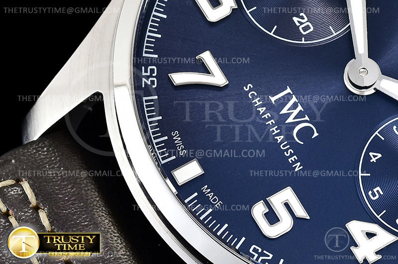 Часы IWC из коллекции Big Pilot's. Классические мужские часы IWC Big Pilot's Watch Annual Calendar Edition Le Petit Prince 46mm IW502703 премиального качества (Артикул магазина: IW-0455) оснащены надежным автоматическим механизмом с автоподзаводом (работает от амплитуды движения руки) калибра IWC52850, в котором реализованы следующие функции: часовая, минутная и секундная стрелки, а так же дата, день недели, месяц, резерв хода. Круглый корпус часов стального цвета, имеющий размер 46 мм и высоту 15 мм превосходно дополнит образ и украсит запястье своего обладателя. Для изготовления часов IWC Big Pilot's Watch Annual Calendar Edition Le Petit Prince 46mm IW502703 предлагаемых в нашем интернет-магазине, применяются нержавеющая сталь 316L высокого качества (Швейцарский стандарт), а так же сапфировое стекло высокой прочности, благодаря чему обеспечивается максимальная защита от сколов и механических повреждений. Отличительной чертой данной модели является синий циферблат, часовые индексы которого обеспечивают арабские цифры. Завершает образ кожаный ремешок коричневого цвета с фирменной раскладывающейся застежкой IWC. Водонепроницаемость данной модели составляет 30М (WR30) – допускается минимальное воздействие с водой.