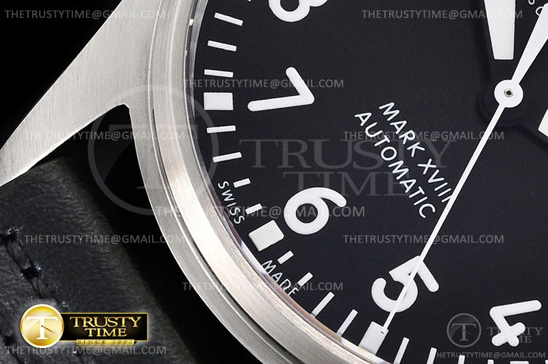 Часы IWC из коллекции Mark XVIII. Классические мужские часы IWC Pilot's Watch Mark XVIII 40mm IW327001 премиального качества (Артикул магазина: IW-0517) оснащены надежным автоматическим механизмом с автоподзаводом (работает от амплитуды движения руки) калибра ETA2892, в котором реализованы следующие функции: часовая, минутная и секундная стрелки, а так же дата. Круглый корпус часов стального цвета, имеющий размер 40 мм и высоту 10 мм превосходно дополнит образ и украсит запястье своего обладателя. Для изготовления часов IWC Pilot's Watch Mark XVIII 40mm IW327001 предлагаемых в нашем интернет-магазине, применяются нержавеющая сталь 316L высокого качества (Швейцарский стандарт), а так же сапфировое стекло высокой прочности, благодаря чему обеспечивается максимальная защита от сколов и механических повреждений. Отличительной чертой данной модели является черный циферблат, часовые индексы которого обеспечивают арабские цифры. Завершает образ кожаный ремешок черного цвета с фирменной классической застежкой IWC. Водонепроницаемость данной модели составляет 30М (WR30) – допускается минимальное воздействие с водой.