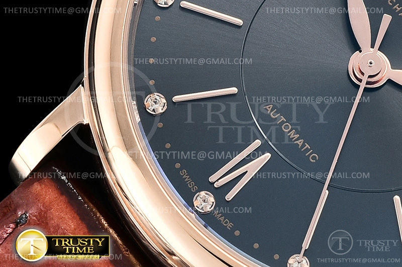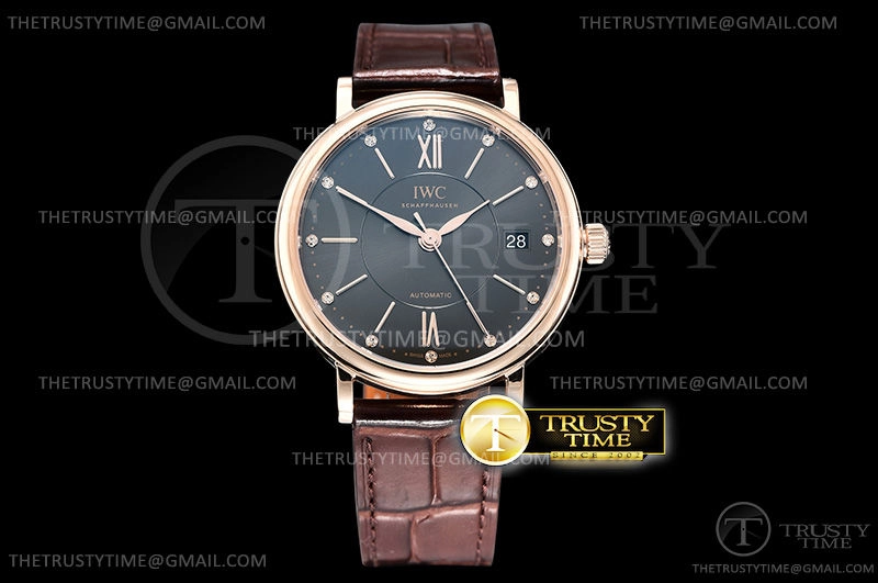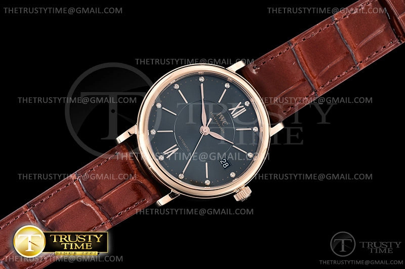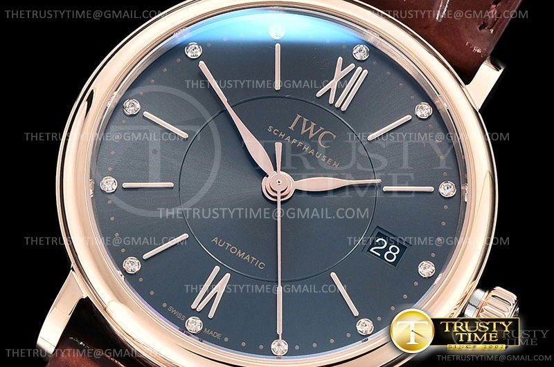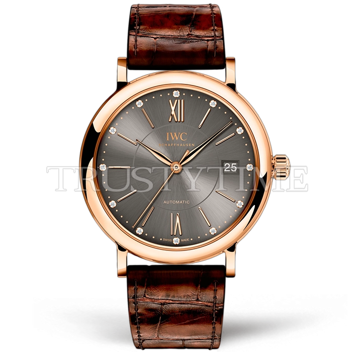 Часы IWC из коллекции Portofino. Классические женские часы IWC Portofino Automatic IW458106 премиального качества (Артикул магазина: IW-0568) оснащены надежным автоматическим механизмом с автоподзаводом (работает от амплитуды движения руки) калибра MY9015, в котором реализованы следующие функции: часовая, минутная и секундная стрелки, а так же дата. Круглый корпус часов розового цвета, имеющий размер 37 мм и высоту 9 мм превосходно дополнит образ и украсит запястье своего обладателя. Для изготовления часов IWC Portofino Automatic IW458106 предлагаемых в нашем интернет-магазине, применяются нержавеющая сталь 316L высокого качества (Швейцарский стандарт), а так же сапфировое стекло высокой прочности, благодаря чему обеспечивается максимальная защита от сколов и механических повреждений. Отличительной чертой данной модели является серый циферблат, часовые индексы которого обеспечивают часовые метки. Завершает образ кожаный ремешок коричневого цвета с фирменной классической застежкой IWC. Водонепроницаемость данной модели составляет 30М (WR30) – допускается минимальное воздействие с водой.