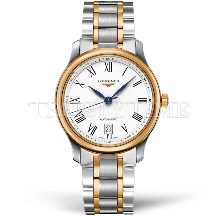 Часы Longines из коллекции Master Collection. Классические мужские часы Longines Master Collection Date 38mm L2.628.5.19.7 премиального качества (Артикул магазина: LN-0360) оснащены надежным автоматическим механизмом с автоподзаводом (работает от амплитуды движения руки) калибра MY9015, в котором реализованы следующие функции: часовая, минутная и секундная стрелки, а так же дата. Круглый корпус часов комбинированного сталь с розового золота цвета, имеющий размер 38.5 мм и высоту 9.5 мм превосходно дополнит образ и украсит запястье своего обладателя. Для изготовления часов Longines Master Collection Date 38mm L2.628.5.19.7 предлагаемых в нашем интернет-магазине, применяются нержавеющая сталь 316F высокого качества (Швейцарский стандарт), а так же сапфировое стекло высокой прочности, благодаря чему обеспечивается максимальная защита от сколов и механических повреждений. Отличительной чертой данной модели является белый циферблат, часовые индексы которого обеспечивают римские цифры. Завершает образ браслет из нержавеющей стали комбинированного сталь с розовым золотом цвета с фирменной раскладывающейся застежкой Longines. Водонепроницаемость данной модели составляет 30М (WR30) – допускается минимальное воздействие с водой.