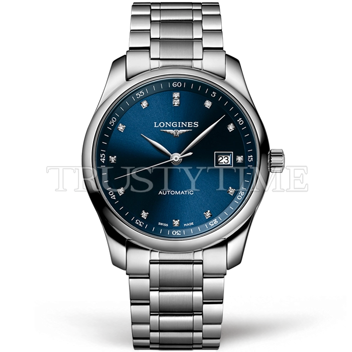 Часы Longines из коллекции Master Collection. Классические мужские часы Longines Master Collection Date 40mm L2.793.4.97.6 премиального качества (Артикул магазина: LN-0376) оснащены надежным автоматическим механизмом с автоподзаводом (работает от амплитуды движения руки) калибра MY9015, в котором реализованы следующие функции: часовая, минутная и секундная стрелки, а так же дата. Круглый корпус часов стального цвета, имеющий размер 40 мм и высоту 10 мм превосходно дополнит образ и украсит запястье своего обладателя. Для изготовления часов Longines Master Collection Date 40mm L2.793.4.97.6 предлагаемых в нашем интернет-магазине, применяются нержавеющая сталь 316F высокого качества (Швейцарский стандарт), а так же сапфировое стекло высокой прочности, благодаря чему обеспечивается максимальная защита от сколов и механических повреждений. Отличительной чертой данной модели является синий циферблат, часовые индексы которого обеспечивают камни. Завершает образ браслет из нержавеющей стали стального цвета с фирменной раскладывающейся застежкой Longines. Водонепроницаемость данной модели составляет 30М (WR30) – допускается минимальное воздействие с водой.