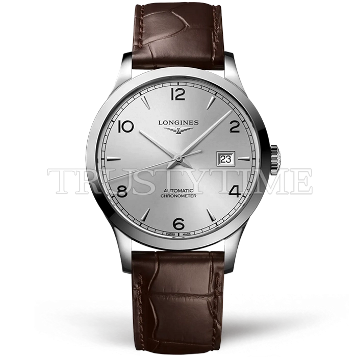 Часы Longines из коллекции Record Collection. Классические мужские часы Longines Tradition Record Collection 40mm L2.821.4.76.2 премиального качества (Артикул магазина: LN-0404) оснащены надежным автоматическим механизмом с автоподзаводом (работает от амплитуды движения руки) калибра L888, в котором реализованы следующие функции: часовая, минутная и секундная стрелки, а так же дата. Круглый корпус часов стального цвета, имеющий размер 40 мм и высоту 11.2 мм превосходно дополнит образ и украсит запястье своего обладателя. Для изготовления часов Longines Tradition Record Collection 40mm L2.821.4.76.2 предлагаемых в нашем интернет-магазине, применяются нержавеющая сталь 316F высокого качества (Швейцарский стандарт), а так же сапфировое стекло высокой прочности, благодаря чему обеспечивается максимальная защита от сколов и механических повреждений. Отличительной чертой данной модели является серебристый циферблат, часовые индексы которого обеспечивают арабские цифры, часовые индексы которого обеспечивают часовые метки. Завершает образ кожаный ремешок коричневого цвета с фирменной раскладывающейся застежкой Longines. Водонепроницаемость данной модели составляет 30М (WR30) – допускается минимальное воздействие с водой.