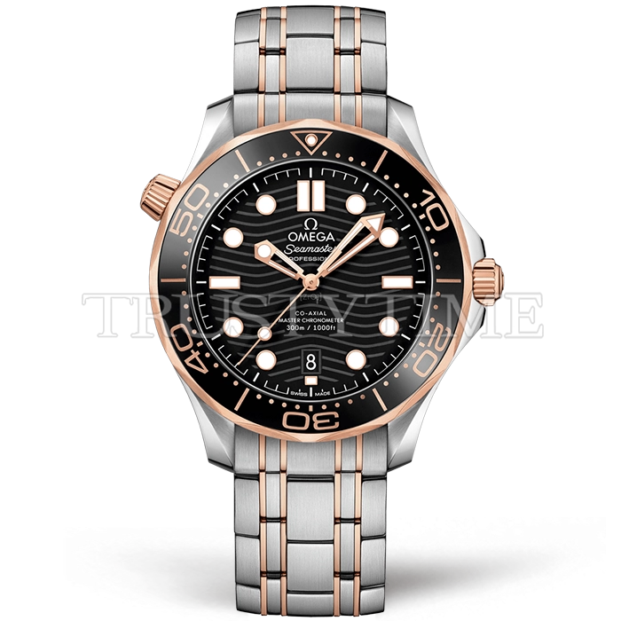 Часы Omega из коллекции Seamaster Diver. Классические мужские часы Omega Seamaster Diver 300m Co-axial Chronometer 42mm 210.20.42.20.01.001 премиального качества (Артикул магазина: OM-0676) оснащены надежным автоматическим механизмом с автоподзаводом (работает от амплитуды движения руки) калибра 8800, в котором реализованы следующие функции: часовая, минутная и секундная стрелки, а так же дата. Круглый корпус часов комбинированного сталь с розового золота цвета, имеющий размер 42 мм и высоту 13 мм превосходно дополнит образ и украсит запястье своего обладателя. Для изготовления часов Omega Seamaster Diver 300m Co-axial Chronometer 42mm 210.20.42.20.01.001 предлагаемых в нашем интернет-магазине, применяются нержавеющая сталь 316F высокого качества (Швейцарский стандарт), а так же сапфировое стекло высокой прочности, благодаря чему обеспечивается максимальная защита от сколов и механических повреждений. Отличительной чертой данной модели является черный циферблат, часовые индексы которого обеспечивают часовые метки. Завершает образ браслет из нержавеющей стали комбинированного сталь с розовым золотом цвета с фирменной раскладывающейся застежкой Omega. Водонепроницаемость данной модели составляет 30М (WR30) – допускается минимальное воздействие с водой.