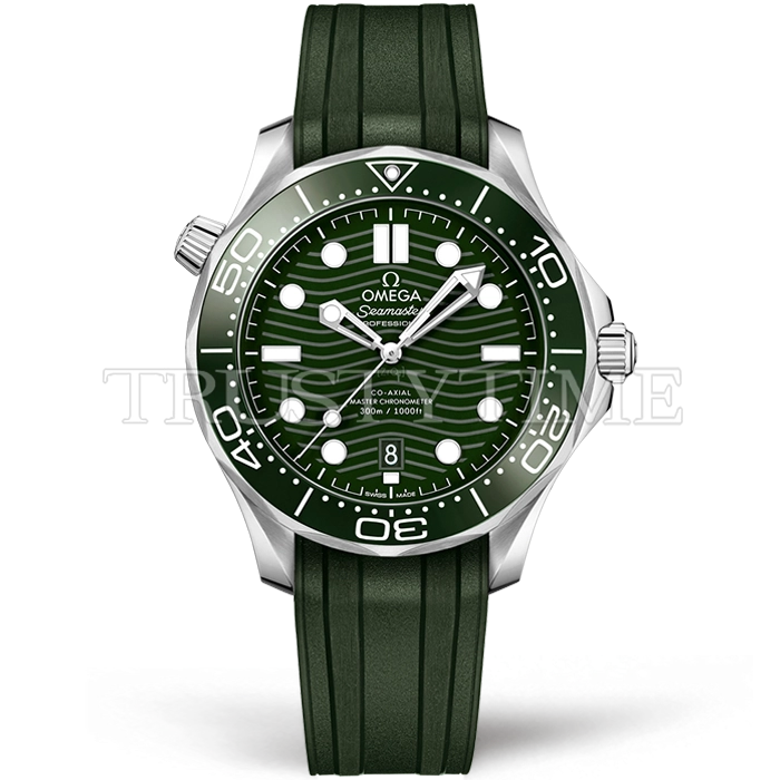 Часы Omega из коллекции Seamaster Diver. Классические мужские часы Omega Seamaster Diver 300m Co-axial Master Chronometer 42mm 210.32.42.20.10.001 премиального качества (Артикул магазина: OM-0879) оснащены надежным автоматическим механизмом с автоподзаводом (работает от амплитуды движения руки) калибра 8800, в котором реализованы следующие функции: часовая, минутная и секундная стрелки, а так же дата. Круглый корпус часов стального цвета, имеющий размер 42 мм и высоту 13 мм превосходно дополнит образ и украсит запястье своего обладателя. Для изготовления часов Omega Seamaster Diver 300m Co-axial Master Chronometer 42mm 210.32.42.20.10.001 предлагаемых в нашем интернет-магазине, применяются нержавеющая сталь 316F высокого качества (Швейцарский стандарт), а так же сапфировое стекло высокой прочности, благодаря чему обеспечивается максимальная защита от сколов и механических повреждений. Отличительной чертой данной модели является зеленый циферблат, часовые индексы которого обеспечивают часовые метки. Завершает образ каучуковый ремешок зеленого цвета с фирменной классической застежкой Omega. Водонепроницаемость данной модели составляет 30М (WR30) – допускается минимальное воздействие с водой.