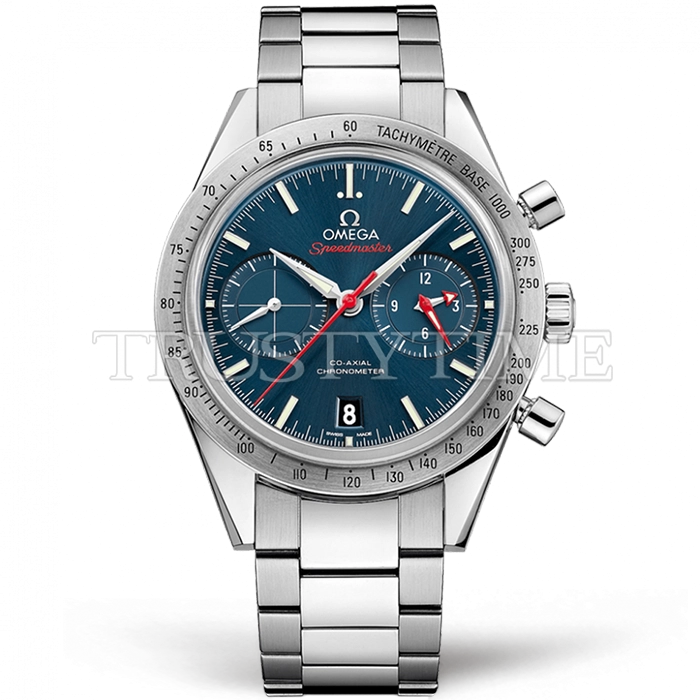 Часы Omega из коллекции SpeedMaster. Спортивные мужские часы Omega Speedmaster Speedmaster 57 Co-Axial Chronograph 41.5mm 331.10.42.51.03.001 премиального качества (Артикул магазина: OM-0736) оснащены надежным автоматическим механизмом с автоподзаводом (работает от амплитуды движения руки) калибра 9300, в котором реализованы следующие функции: часовая, минутная и секундная стрелки, а так же хронограф, дата. Круглый корпус часов стального цвета, имеющий размер 41.5 мм и высоту 18.5 мм превосходно дополнит образ и украсит запястье своего обладателя. Для изготовления часов Omega Speedmaster Speedmaster 57 Co-Axial Chronograph 41.5mm 331.10.42.51.03.001 предлагаемых в нашем интернет-магазине, применяются нержавеющая сталь 316F высокого качества (Швейцарский стандарт), а так же сапфировое стекло высокой прочности, благодаря чему обеспечивается максимальная защита от сколов и механических повреждений. Отличительной чертой данной модели является синий циферблат, часовые индексы которого обеспечивают часовые метки. Завершает образ браслет из нержавеющей стали стального цвета с фирменной раскладывающейся застежкой Omega. Водонепроницаемость данной модели составляет 30М (WR30) – допускается минимальное воздействие с водой.