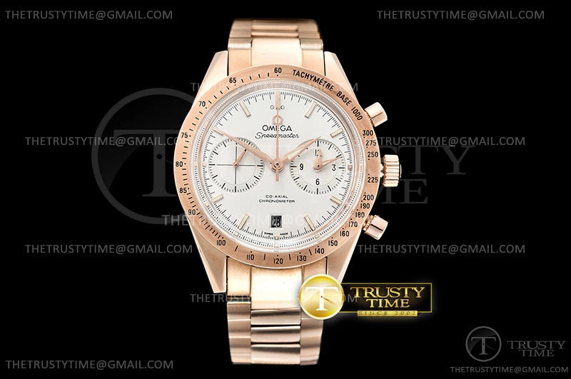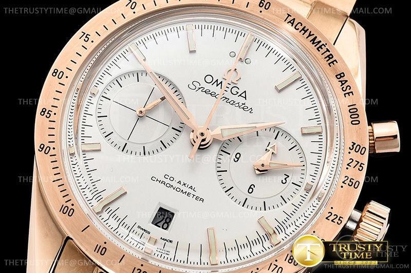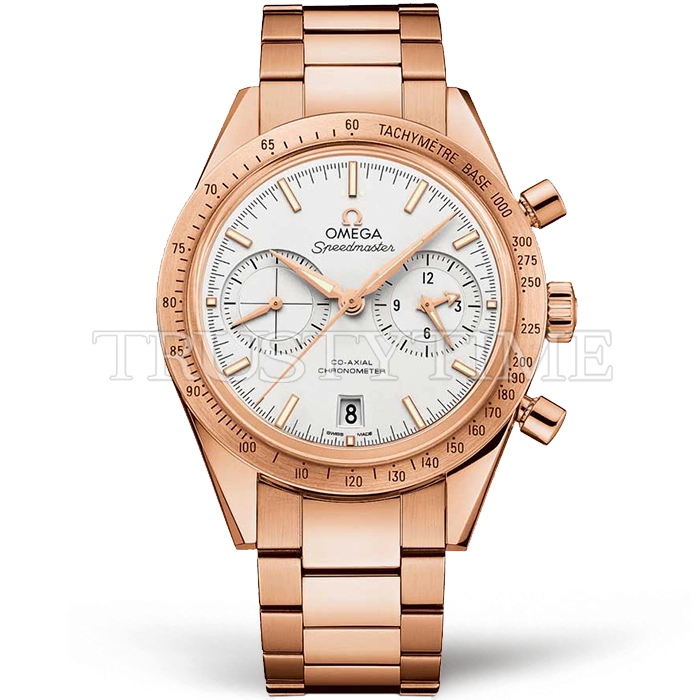 Часы Omega из коллекции SpeedMaster. Спортивные мужские часы Omega Speedmaster Speedmaster 57 Co-Axial Chronograph 41.5mm 331.50.42.51.02.002 премиального качества (Артикул магазина: OM-0732) оснащены надежным автоматическим механизмом с автоподзаводом (работает от амплитуды движения руки) калибра 9300, в котором реализованы следующие функции: часовая, минутная и секундная стрелки, а так же хронограф, дата. Круглый корпус часов розового цвета, имеющий размер 41.5 мм и высоту 18.5 мм превосходно дополнит образ и украсит запястье своего обладателя. Для изготовления часов Omega Speedmaster Speedmaster 57 Co-Axial Chronograph 41.5mm 331.50.42.51.02.002 предлагаемых в нашем интернет-магазине, применяются нержавеющая сталь 316F высокого качества (Швейцарский стандарт), а так же сапфировое стекло высокой прочности, благодаря чему обеспечивается максимальная защита от сколов и механических повреждений. Отличительной чертой данной модели является белый циферблат, часовые индексы которого обеспечивают часовые метки. Завершает образ браслет из нержавеющей стали цвета розового золота с фирменной раскладывающейся застежкой Omega. Водонепроницаемость данной модели составляет 30М (WR30) – допускается минимальное воздействие с водой.