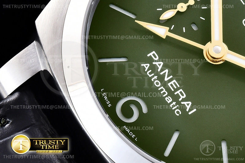 Часы Panerai из коллекции Luminor GMT. Классические мужские часы Panerai Luminor 1950 3 Days MS Dhoni GMT Automatic 44mm PAM01056 премиального качества (Артикул магазина: PN-0786) оснащены надежным автоматическим механизмом с автоподзаводом (работает от амплитуды движения руки) калибра P9010, в котором реализованы следующие функции: часовая, минутная и секундная стрелки, а так же дата, двойное время (GMT). Круглый корпус часов стального цвета, имеющий размер 44 мм и высоту 16 мм превосходно дополнит образ и украсит запястье своего обладателя. Для изготовления часов Panerai Luminor 1950 3 Days MS Dhoni GMT Automatic 44mm PAM01056 предлагаемых в нашем интернет-магазине, применяются нержавеющая сталь 316F высокого качества (Швейцарский стандарт), а так же сапфировое стекло высокой прочности, благодаря чему обеспечивается максимальная защита от сколов и механических повреждений. Отличительной чертой данной модели является зеленый циферблат, часовые индексы которого обеспечивают часовые метки. Завершает образ кожаный ремешок черного цвета с фирменной классической застежкой Panerai. Водонепроницаемость данной модели составляет 30М (WR30) – допускается минимальное воздействие с водой.