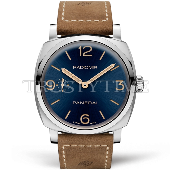 Часы Panerai из коллекции Luminor. Классические мужские часы Panerai Radiomir 1940 3 Days Acciaio 47mm PAM00690 премиального качества (Артикул магазина: PN-0900) оснащены надежным автоматическим механизмом с ручным заводом калибра P3000, в котором реализованы следующие функции: часовая, минутная и секундная стрелки, а так же максимально простой функционал без усложнений. Круглый корпус часов стального цвета, имеющий размер 47 мм и высоту 17.5 мм превосходно дополнит образ и украсит запястье своего обладателя. Для изготовления часов Panerai Radiomir 1940 3 Days Acciaio 47mm PAM00690 предлагаемых в нашем интернет-магазине, применяются нержавеющая сталь 316F высокого качества (Швейцарский стандарт), а так же сапфировое стекло высокой прочности, благодаря чему обеспечивается максимальная защита от сколов и механических повреждений. Отличительной чертой данной модели является синий циферблат, часовые индексы которого обеспечивают арабские цифры, часовые индексы которого обеспечивают часовые метки. Завершает образ кожаный ремешок коричневого цвета с фирменной классической застежкой Panerai. Водонепроницаемость данной модели составляет 30М (WR30) – допускается минимальное воздействие с водой.