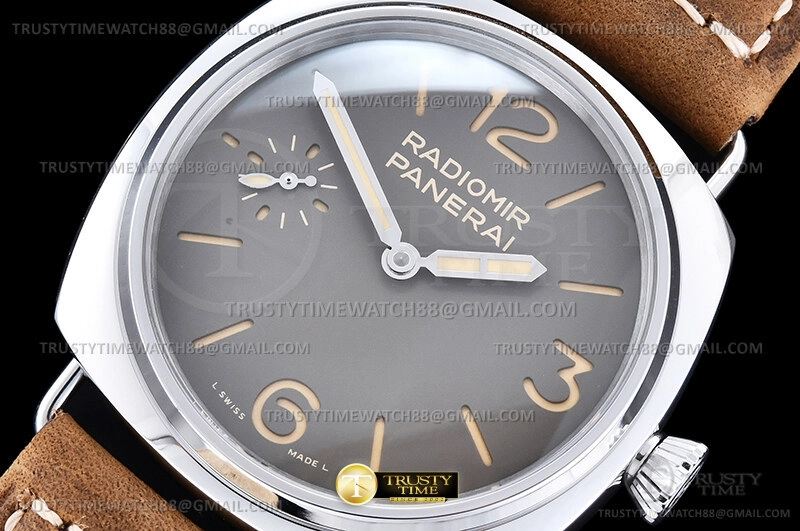 Часы Panerai из коллекции Radiomir. Классические мужские часы Panerai Radiomir Officine 45 PAM01385 премиального качества (Артикул магазина: PN-0932) оснащены надежным автоматическим механизмом с ручным заводом калибра Unitas 6497-2, в котором реализованы следующие функции: часовая, минутная и секундная стрелки, а так же максимально простой функционал без усложнений. Круглый корпус часов стального цвета, имеющий размер 45 мм и высоту 13 мм превосходно дополнит образ и украсит запястье своего обладателя. Для изготовления часов Panerai Radiomir Officine 45 PAM01385 предлагаемых в нашем интернет-магазине, применяются нержавеющая сталь 316F высокого качества (Швейцарский стандарт), а так же сапфировое стекло высокой прочности, благодаря чему обеспечивается максимальная защита от сколов и механических повреждений. Отличительной чертой данной модели является коричневый циферблат, часовые индексы которого обеспечивают арабские цифры, часовые индексы которого обеспечивают часовые метки. Завершает образ кожаный ремешок коричневого цвета с фирменной классической застежкой Panerai. Водонепроницаемость данной модели составляет 30М (WR30) – допускается минимальное воздействие с водой.