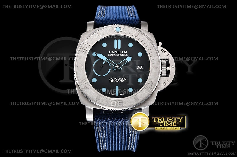 Часы Panerai из коллекции Submersible. Классические мужские часы Panerai Luminor Submersible Mike Horn Edition 47mm PAM00985 премиального качества (Артикул магазина: PN-0762) оснащены надежным автоматическим механизмом с автоподзаводом (работает от амплитуды движения руки) калибра P9010, в котором реализованы следующие функции: часовая, минутная и секундная стрелки, а так же дата. Круглый корпус часов серого цвета, имеющий размер 47 мм и высоту 15 мм превосходно дополнит образ и украсит запястье своего обладателя. Для изготовления часов Panerai Luminor Submersible Mike Horn Edition 47mm PAM00985 предлагаемых в нашем интернет-магазине, применяются титан высокого качества (Швейцарский стандарт), а так же сапфировое стекло высокой прочности, благодаря чему обеспечивается максимальная защита от сколов и механических повреждений. Отличительной чертой данной модели является черный циферблат, часовые индексы которого обеспечивают часовые метки. Завершает образ нейлоновый ремешок синего цвета с фирменной классической застежкой Panerai. Водонепроницаемость данной модели составляет 30М (WR30) – допускается минимальное воздействие с водой.