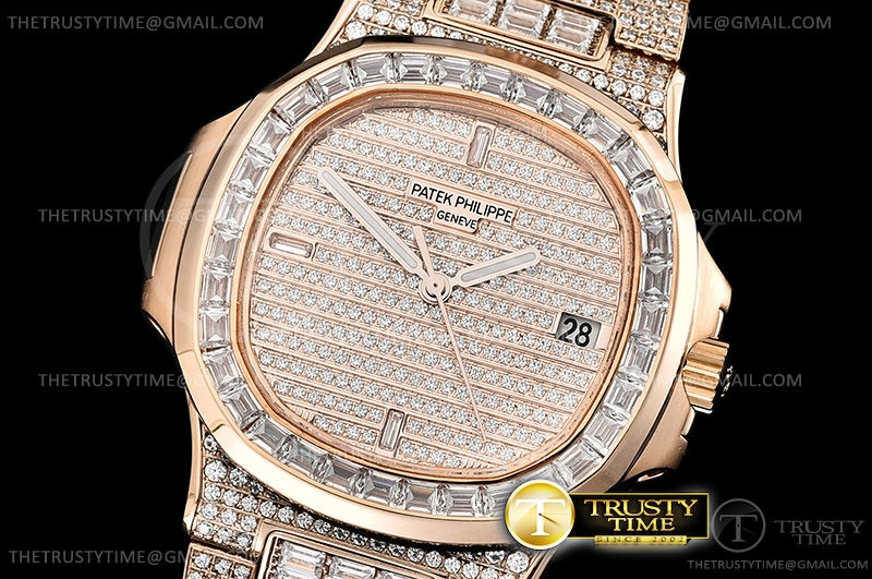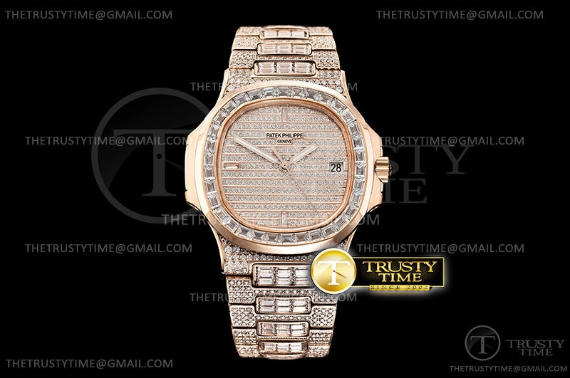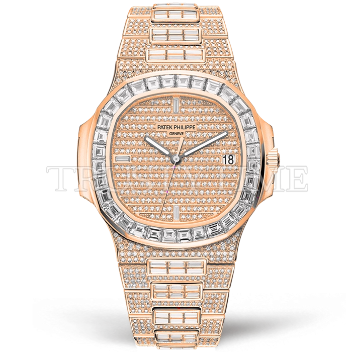 Часы Patek Philippe из коллекции Nautilus. Классические мужские, женские часы Patek Philippe Nautilus 40mm 5719/10R-010 премиального качества (Артикул магазина: PP-0488) оснащены надежным автоматическим механизмом с автоподзаводом (работает от амплитуды движения руки) калибра PP324, в котором реализованы следующие функции: часовая, минутная и секундная стрелки, а так же дата. Восьмиугольный корпус часов розового цвета, имеющий размер 40 мм и высоту 13 мм превосходно дополнит образ и украсит запястье своего обладателя. Для изготовления часов Patek Philippe Nautilus 40mm 5719/10R-010 предлагаемых в нашем интернет-магазине, применяются нержавеющая сталь 316L высокого качества (Швейцарский стандарт), а так же сапфировое стекло высокой прочности, благодаря чему обеспечивается максимальная защита от сколов и механических повреждений. Отличительной чертой данной модели является золотой циферблат, часовые индексы которого обеспечивают часовые метки. Завершает образ браслет из нержавеющей стали цвета розового золота с фирменной раскладывающейся застежкой Patek Philippe. Водонепроницаемость данной модели составляет 30М (WR30) – допускается минимальное воздействие с водой.