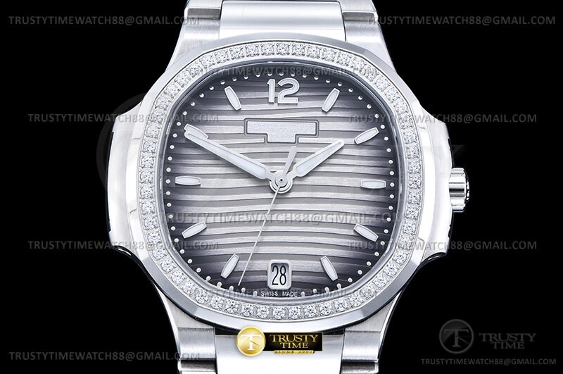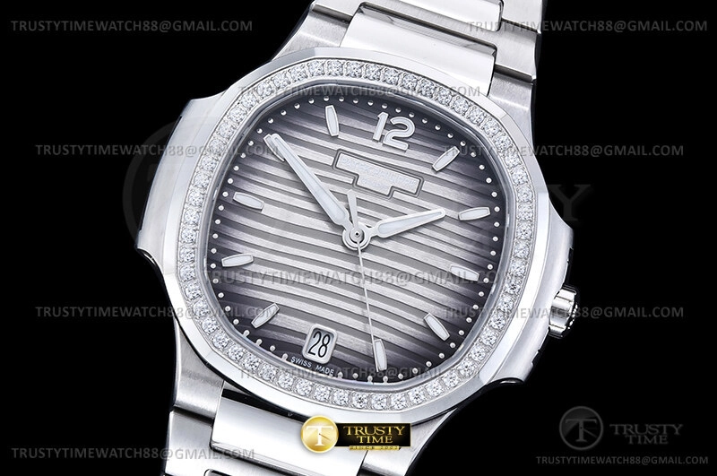Часы Patek Philippe из коллекции Nautilus. Классические женские часы Patek Philippe Nautilus Ladies 35mm 7118/1200A-011 премиального качества (Артикул магазина: PP-0777) оснащены надежным автоматическим механизмом с автоподзаводом (работает от амплитуды движения руки) калибра PP324CS, в котором реализованы следующие функции: часовая, минутная и секундная стрелки, а так же дата. Восьмиугольный корпус часов стального цвета, имеющий размер 35 мм и высоту 8.3 мм превосходно дополнит образ и украсит запястье своего обладателя. Для изготовления часов Patek Philippe Nautilus Ladies 35mm 7118/1200A-011 предлагаемых в нашем интернет-магазине, применяются нержавеющая сталь 316F высокого качества (Швейцарский стандарт), а так же сапфировое стекло высокой прочности, благодаря чему обеспечивается максимальная защита от сколов и механических повреждений. Отличительной чертой данной модели является серый циферблат, часовые индексы которого обеспечивают часовые метки. Завершает образ браслет из нержавеющей стали стального цвета с фирменной раскладывающейся застежкой Patek Philippe. Водонепроницаемость данной модели составляет 30М (WR30) – допускается минимальное воздействие с водой.