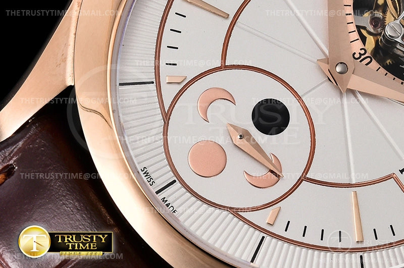 Часы Piaget из коллекции Gouverneur Tourbillon. Классические мужские часы Piaget Gouverneur Tourbillon 43mm G0A37114 премиального качества (Артикул магазина: PG-0154) оснащены надежным автоматическим механизмом с ручным заводом калибра Seagull Handwind Tourbillon, в котором реализованы следующие функции: часова и минутка стрелки, а так же турбийон, день-ночь. Круглый корпус часов розового цвета, имеющий размер 43 мм и высоту 10 мм превосходно дополнит образ и украсит запястье своего обладателя. Для изготовления часов Piaget Gouverneur Tourbillon 43mm G0A37114 предлагаемых в нашем интернет-магазине, применяются нержавеющая сталь 316L высокого качества (Швейцарский стандарт), а так же сапфировое стекло высокой прочности, благодаря чему обеспечивается максимальная защита от сколов и механических повреждений. Отличительной чертой данной модели является белый циферблат, часовые индексы которого обеспечивают часовые метки. Завершает образ кожаный ремешок коричневого цвета с фирменной раскладывающейся застежкой Piaget. Водонепроницаемость данной модели составляет 30М (WR30) – допускается минимальное воздействие с водой.