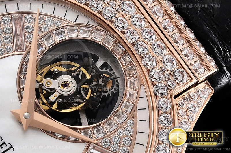 Часы Piaget из коллекции Polo. Классические мужские часы Piaget Polo Tourbillon 44mm G0A36111 премиального качества (Артикул магазина: PG-0159) оснащены надежным автоматическим механизмом с ручным заводом калибра Seagull Handwind Tourbillon, в котором реализованы следующие функции: часова и минутка стрелки, а так же турбийон, резерв хода. Круглый корпус часов розового цвета, имеющий размер 44 мм и высоту 12 мм превосходно дополнит образ и украсит запястье своего обладателя. Для изготовления часов Piaget Polo Tourbillon 44mm G0A36111 предлагаемых в нашем интернет-магазине, применяются нержавеющая сталь 316L высокого качества (Швейцарский стандарт), а так же сапфировое стекло высокой прочности, благодаря чему обеспечивается максимальная защита от сколов и механических повреждений. Отличительной чертой данной модели является перламутровый циферблат, часовые индексы которого обеспечивают часовые метки. Завершает образ кожаный ремешок коричневого цвета с фирменной раскладывающейся застежкой Piaget. Водонепроницаемость данной модели составляет 30М (WR30) – допускается минимальное воздействие с водой.