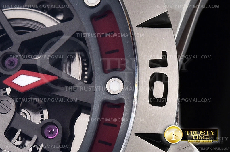 Часы Roger Dubuis из коллекции Excalibur Spider Tourbillon. Спортивные мужские часы Roger Dubuis Excalibur Spider Skeleton Flying Tourbillon 45mm RDDBEX0545 премиального качества (Артикул магазина: RG-0421) оснащены надежным автоматическим механизмом с ручным заводом калибра Seagull Handwind Tourbillon, в котором реализованы следующие функции: часова и минутка стрелки, а так же турбийон. Круглый корпус часов серого цвета, имеющий размер 45 мм и высоту 14 мм превосходно дополнит образ и украсит запястье своего обладателя. Для изготовления часов Roger Dubuis Excalibur Spider Skeleton Flying Tourbillon 45mm RDDBEX0545 предлагаемых в нашем интернет-магазине, применяются титан высокого качества (Швейцарский стандарт), а так же сапфировое стекло высокой прочности, благодаря чему обеспечивается максимальная защита от сколов и механических повреждений. Отличительной чертой данной модели является скелетонизированный циферблат, часовые индексы которого обеспечивают часовые метки. Завершает образ каучуковый ремешок черного цвета с фирменной раскладывающейся застежкой Roger Dubuis. Водонепроницаемость данной модели составляет 30М (WR30) – допускается минимальное воздействие с водой.