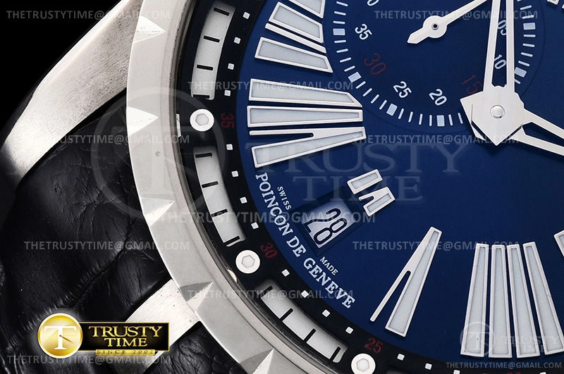 Часы Roger Dubuis из коллекции Excalibur. Классические мужские часы Roger Dubuis Excalibur 45mm RDDBEX0543 премиального качества (Артикул магазина: RG-0415) оснащены надежным автоматическим механизмом с автоподзаводом (работает от амплитуды движения руки) калибра RD640, в котором реализованы следующие функции: часовая, минутная и секундная стрелки, а так же дата. Круглый корпус часов стального цвета, имеющий размер 45 мм и высоту 15 мм превосходно дополнит образ и украсит запястье своего обладателя. Для изготовления часов Roger Dubuis Excalibur 45mm RDDBEX0543 предлагаемых в нашем интернет-магазине, применяются титан высокого качества (Швейцарский стандарт), а так же сапфировое стекло высокой прочности, благодаря чему обеспечивается максимальная защита от сколов и механических повреждений. Отличительной чертой данной модели является синий циферблат, часовые индексы которого обеспечивают римские цифры. Завершает образ кожаный ремешок черного цвета с фирменной раскладывающейся застежкой Roger Dubuis. Водонепроницаемость данной модели составляет 30М (WR30) – допускается минимальное воздействие с водой.