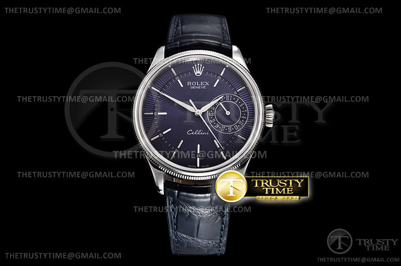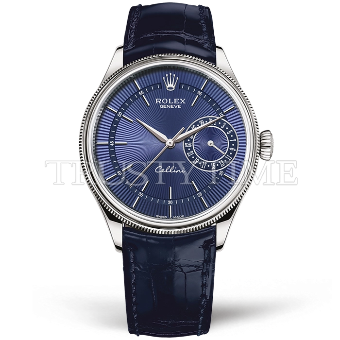 Часы Rolex из коллекции Cellini Date. Классические мужские часы Rolex Cellini Date 39mm 50519-0011 премиального качества (Артикул магазина: RX-0199) оснащены надежным автоматическим механизмом с автоподзаводом (работает от амплитуды движения руки) калибра 3165, в котором реализованы следующие функции: часовая, минутная и секундная стрелки, а так же дата. Круглый корпус часов стального цвета, имеющий размер 39 мм и высоту 13 мм превосходно дополнит образ и украсит запястье своего обладателя. Для изготовления часов Rolex Cellini Date 39mm 50519-0011 предлагаемых в нашем интернет-магазине, применяются нержавеющая сталь 316F высокого качества (Швейцарский стандарт), а так же сапфировое стекло высокой прочности, благодаря чему обеспечивается максимальная защита от сколов и механических повреждений. Отличительной чертой данной модели является синий циферблат, часовые индексы которого обеспечивают часовые метки. Завершает образ кожаный ремешок синего цвета с фирменной классической застежкой Rolex. Водонепроницаемость данной модели составляет 30М (WR30) – допускается минимальное воздействие с водой.