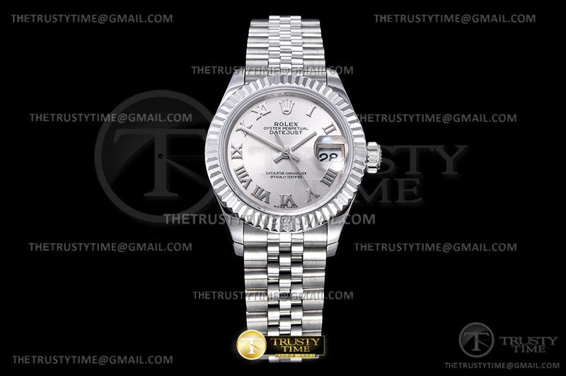 Часы Rolex из коллекции DateJust. Классические женские часы Rolex DateJust 28mm 279174-0007 премиального качества (Артикул магазина: RX-2027) оснащены надежным автоматическим механизмом с автоподзаводом (работает от амплитуды движения руки) калибра ETA2671, в котором реализованы следующие функции: часовая, минутная и секундная стрелки, а так же дата. Круглый корпус часов стального цвета, имеющий размер 28 мм и высоту 11 мм превосходно дополнит образ и украсит запястье своего обладателя. Для изготовления часов Rolex DateJust 28mm 279174-0007 предлагаемых в нашем интернет-магазине, применяются нержавеющая сталь 904L высокого качества (Швейцарский стандарт), а так же сапфировое стекло высокой прочности, благодаря чему обеспечивается максимальная защита от сколов и механических повреждений. Отличительной чертой данной модели является серебристый циферблат, часовые индексы которого обеспечивают римские цифры. Завершает образ браслет из нержавеющей стали стального цвета с фирменной раскладывающейся застежкой Rolex. Водонепроницаемость данной модели составляет 30М (WR30) – допускается минимальное воздействие с водой.