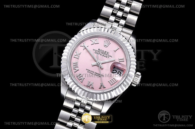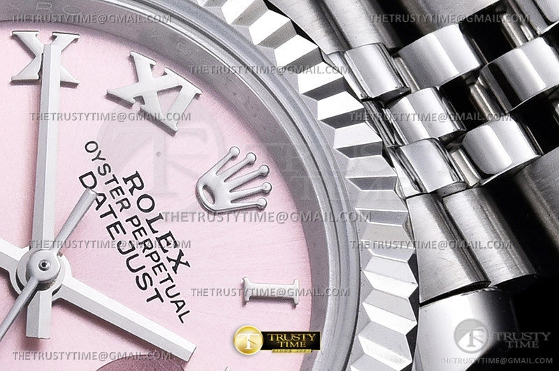 Часы Rolex из коллекции DateJust. Классические женские часы Rolex DateJust 28mm 279174-0013 премиального качества (Артикул магазина: RX-2028) оснащены надежным автоматическим механизмом с автоподзаводом (работает от амплитуды движения руки) калибра ETA2671, в котором реализованы следующие функции: часовая, минутная и секундная стрелки, а так же дата. Круглый корпус часов стального цвета, имеющий размер 28 мм и высоту 11 мм превосходно дополнит образ и украсит запястье своего обладателя. Для изготовления часов Rolex DateJust 28mm 279174-0013 предлагаемых в нашем интернет-магазине, применяются нержавеющая сталь 904L высокого качества (Швейцарский стандарт), а так же сапфировое стекло высокой прочности, благодаря чему обеспечивается максимальная защита от сколов и механических повреждений. Отличительной чертой данной модели является розовый циферблат, часовые индексы которого обеспечивают римские цифры. Завершает образ браслет из нержавеющей стали стального цвета с фирменной раскладывающейся застежкой Rolex. Водонепроницаемость данной модели составляет 30М (WR30) – допускается минимальное воздействие с водой.