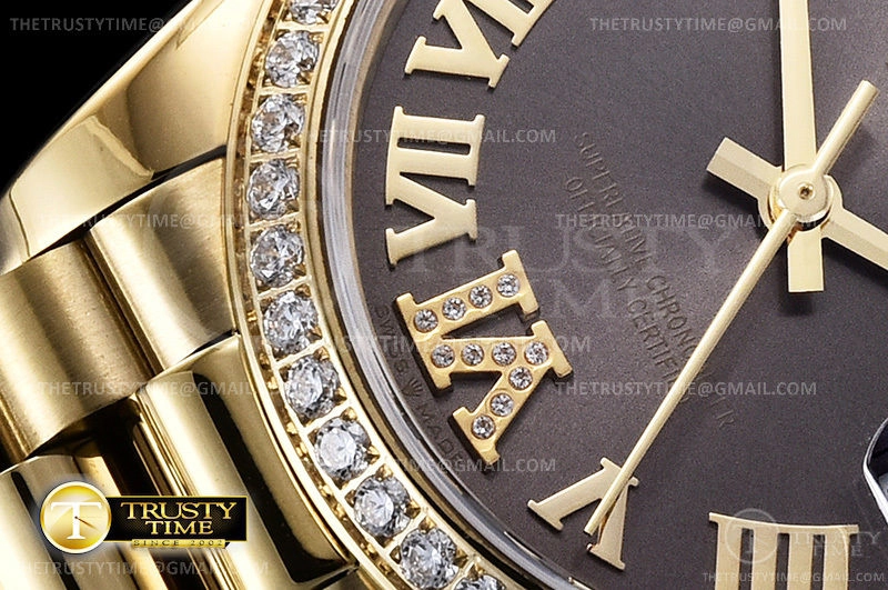 Часы Rolex из коллекции DateJust. Классические женские часы Rolex DateJust 31mm 278288RBR-0026 премиального качества (Артикул магазина: RX-0561) оснащены надежным автоматическим механизмом с автоподзаводом (работает от амплитуды движения руки) калибра ETA2824-2, в котором реализованы следующие функции: часовая, минутная и секундная стрелки, а так же дата. Круглый корпус часов цветы желтой золота, имеющий размер 31 мм и высоту 12 мм превосходно дополнит образ и украсит запястье своего обладателя. Для изготовления часов Rolex DateJust 31mm 278288RBR-0026 предлагаемых в нашем интернет-магазине, применяются нержавеющая сталь 316F высокого качества (Швейцарский стандарт), а так же сапфировое стекло высокой прочности, благодаря чему обеспечивается максимальная защита от сколов и механических повреждений. Отличительной чертой данной модели является серый циферблат, часовые индексы которого обеспечивают римские цифры. Завершает образ браслет из нержавеющей стали цвета желтого золота с фирменной раскладывающейся застежкой Rolex. Водонепроницаемость данной модели составляет 30М (WR30) – допускается минимальное воздействие с водой.