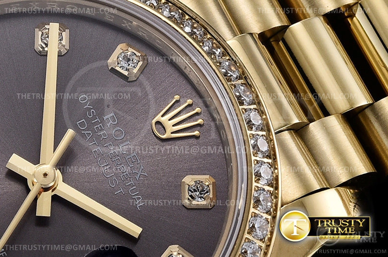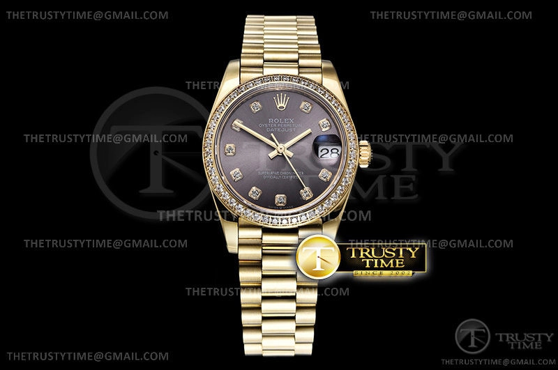 Часы Rolex из коллекции DateJust. Классические женские часы Rolex DateJust 31mm 278288RBR-0030 премиального качества (Артикул магазина: RX-0554) оснащены надежным автоматическим механизмом с автоподзаводом (работает от амплитуды движения руки) калибра ETA2824-2, в котором реализованы следующие функции: часовая, минутная и секундная стрелки, а так же дата. Круглый корпус часов цветы желтой золота, имеющий размер 31 мм и высоту 12 мм превосходно дополнит образ и украсит запястье своего обладателя. Для изготовления часов Rolex DateJust 31mm 278288RBR-0030 предлагаемых в нашем интернет-магазине, применяются нержавеющая сталь 316F высокого качества (Швейцарский стандарт), а так же сапфировое стекло высокой прочности, благодаря чему обеспечивается максимальная защита от сколов и механических повреждений. Отличительной чертой данной модели является серый циферблат, часовые индексы которого обеспечивают камни. Завершает образ браслет из нержавеющей стали цвета желтого золота с фирменной раскладывающейся застежкой Rolex. Водонепроницаемость данной модели составляет 30М (WR30) – допускается минимальное воздействие с водой.