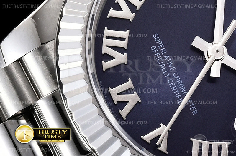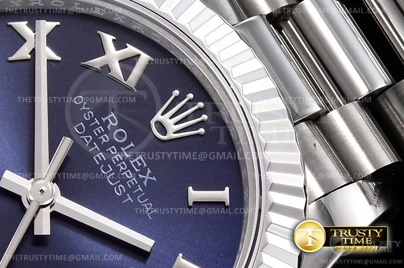 Часы Rolex из коллекции DateJust. Классические женские часы Rolex DateJust 31mm 178279-0083 премиального качества (Артикул магазина: RX-0585) оснащены надежным автоматическим механизмом с автоподзаводом (работает от амплитуды движения руки) калибра ETA2824-2, в котором реализованы следующие функции: часовая, минутная и секундная стрелки, а так же дата. Круглый корпус часов стального цвета, имеющий размер 31 мм и высоту 12 мм превосходно дополнит образ и украсит запястье своего обладателя. Для изготовления часов Rolex DateJust 31mm 178279-0083 предлагаемых в нашем интернет-магазине, применяются нержавеющая сталь 316F высокого качества (Швейцарский стандарт), а так же сапфировое стекло высокой прочности, благодаря чему обеспечивается максимальная защита от сколов и механических повреждений. Отличительной чертой данной модели является синий циферблат, часовые индексы которого обеспечивают римские цифры. Завершает образ браслет из нержавеющей стали стального цвета с фирменной раскладывающейся застежкой Rolex. Водонепроницаемость данной модели составляет 30М (WR30) – допускается минимальное воздействие с водой.